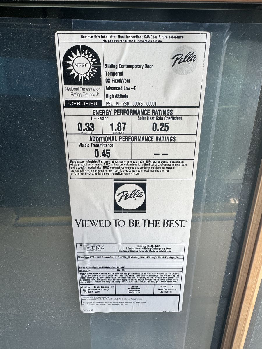 VenmoBrand new Pella aluminum clad sliding patio door, size 6060 (6’ x 6’). Door has never been installed and still has the factory label on the glass. High quality Pella door with tempered glass and energy efficient Low-E glass designed for high altitude climates. Configuration is OX with one fixed panel and one sliding panel. White exterior. Includes matching sliding screen door. Great option for new construction, remodels, or replacing an older patio door.