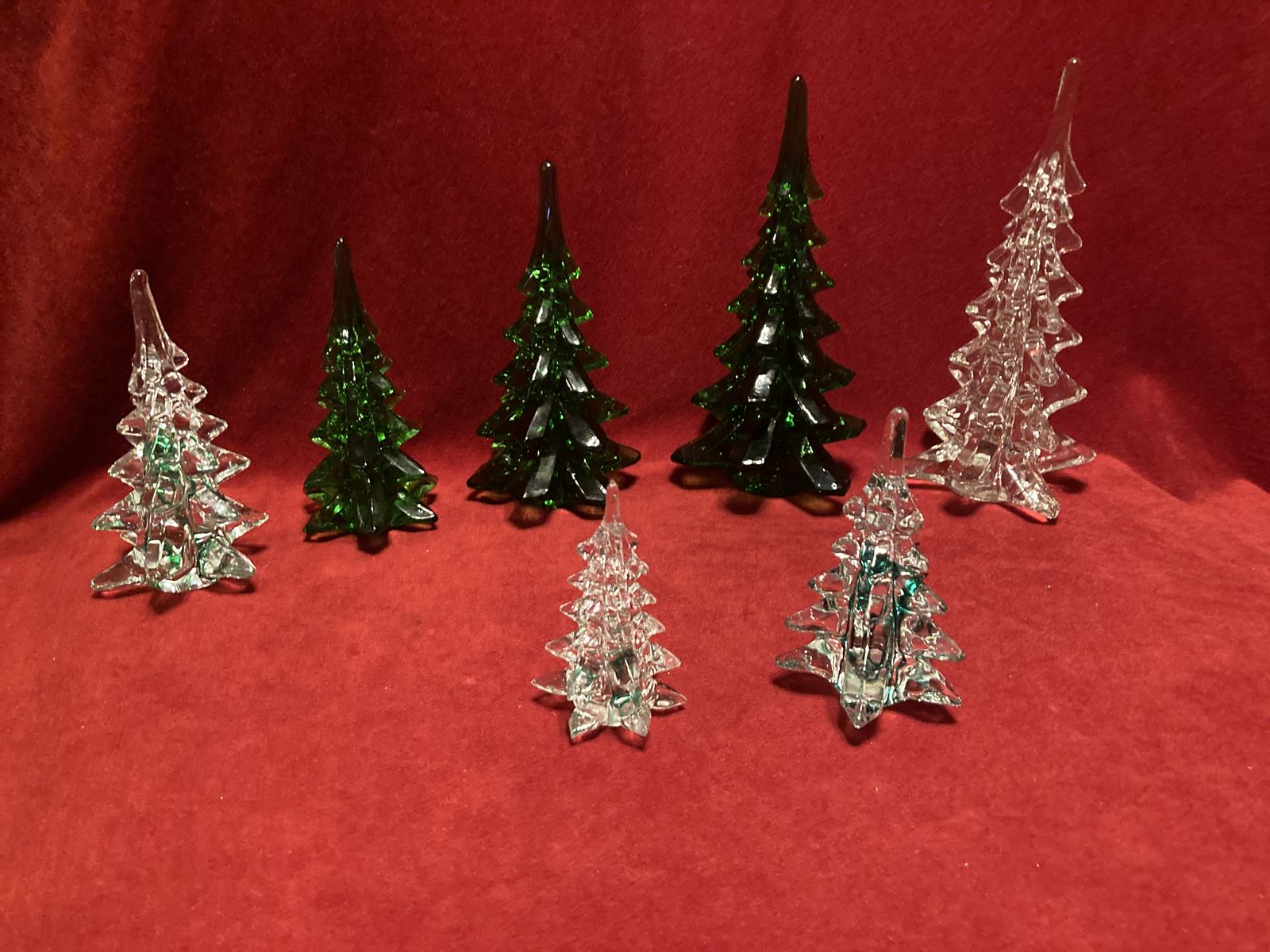 Hello I have a Vintage Collection Rare ZCMI Hand Blown Art Crystal Glass Christmas Trees Emerald Green Clear & Clear With Green Swirl Like New Condition Very Nice Unique Classy Vintage Style Great Deal for Collectors