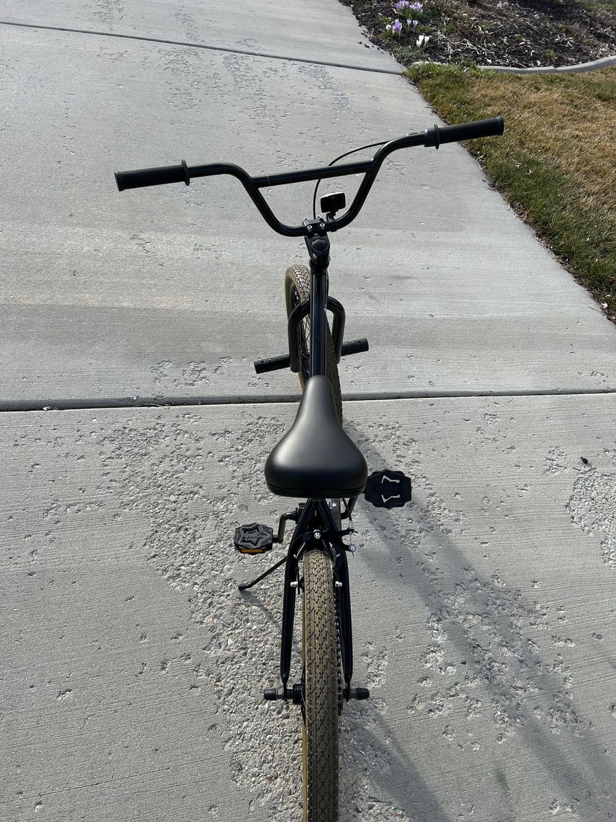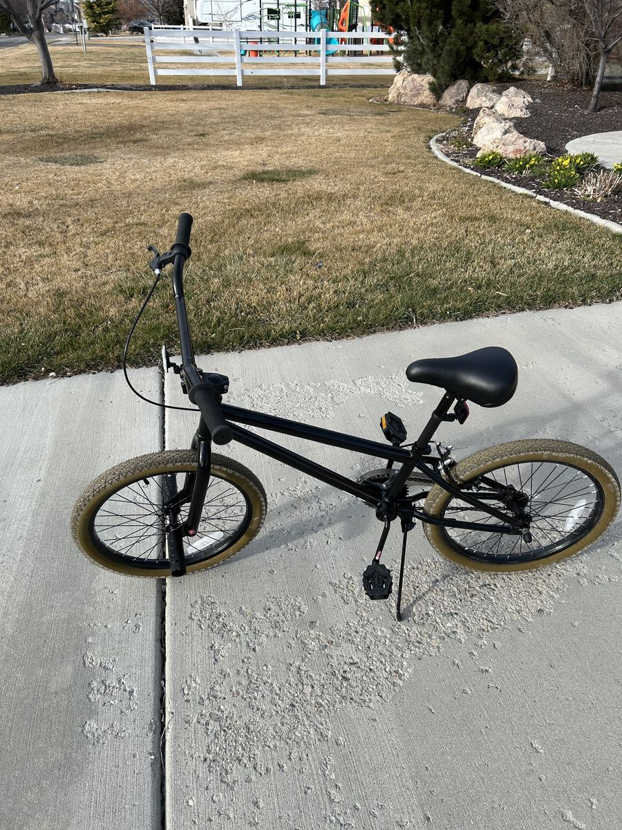 It has trick pegs in the front, freewheel, and a comfortable seat. It’s only been ridden once.