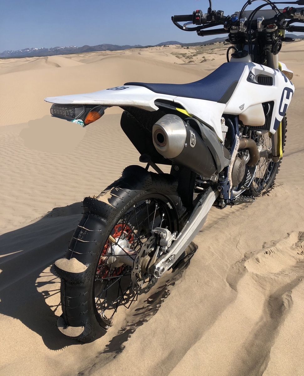 Rear: • 10 paddle sand tire (19in wheel) – amazing for sand dunes • DOT knobby tire (18in wheel) for trails / dual sport • Additional unmounted mud tire