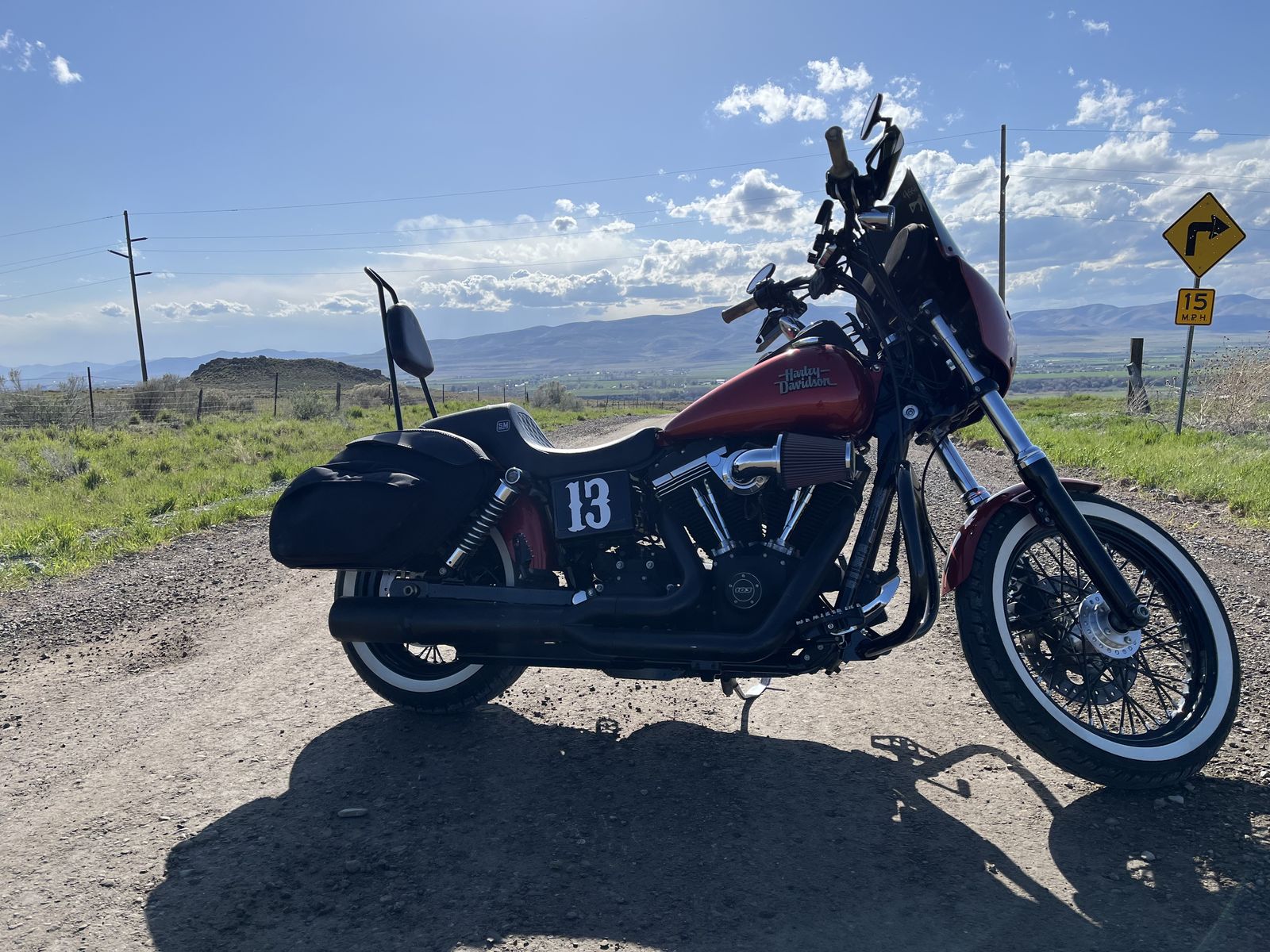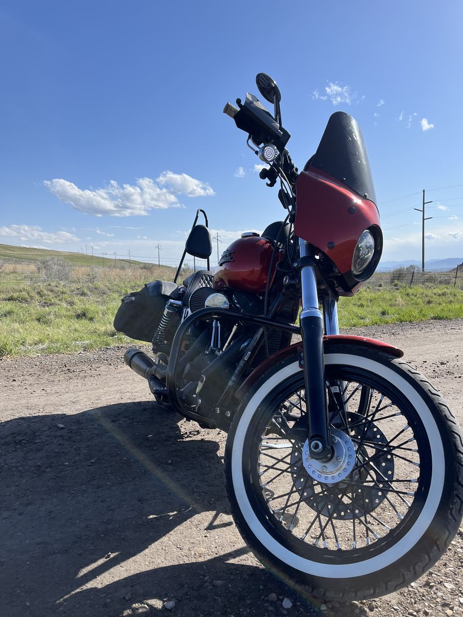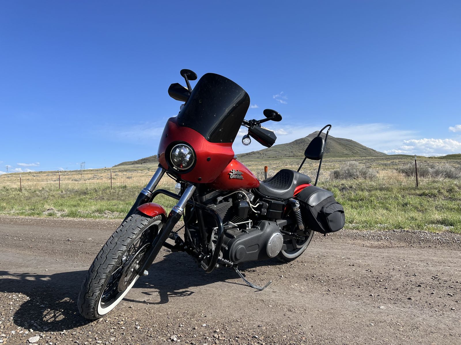 2013 Harley Davidson Dyna Street Bob 103 Twin Cam, 6 speed, 1690cc 18,5XXMiles Lots of upgrades. Leatherpros Retro Removable Saddlebags Color-matched Memphis Shades Road Warrior Fairing, blacked out windshield, LOUD Custom Bluetooth Stereo behind handlebars, Stage 1 Performance (Fuel tuner, Big Air intake, Screaming eagle exhaust), Sissybar with cushion, Saddlemen Step-Up seat, H-D Engine Guard, 10-inch riser bars with 2-inch rake, Dirtbike style pegs, license plate bracket, custom rear lights, LED lights all around, steel Dirtbike handguards... I can't think of anything else, but I could be wrong. I'll add to it should I think of anything else. I'll throw in a full face helmet too.