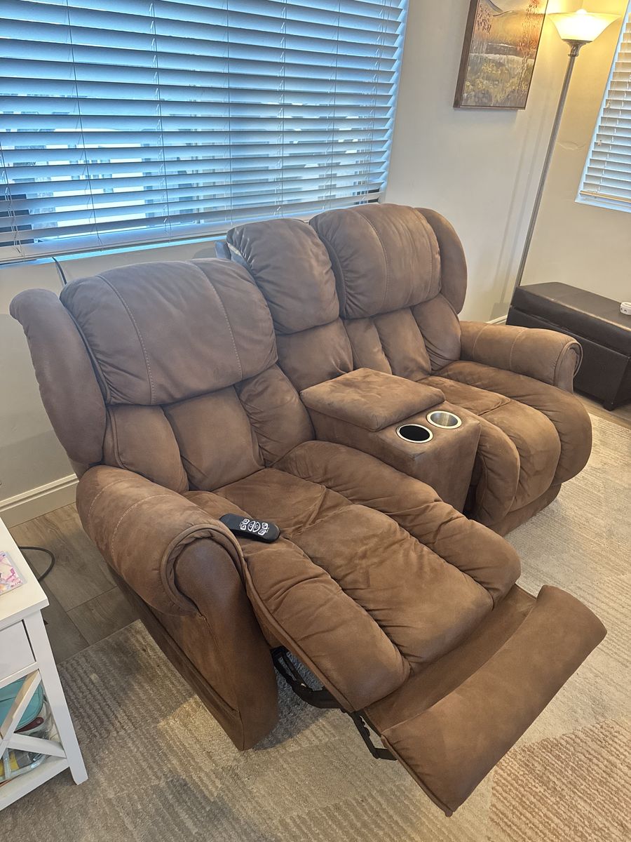 VenmoPower adjustable headrest, lumbar support, and footrests with remotes. The outer 2 seats of the couch are powered as well as both lovseat spots. The loveseat has a center console and 2 cupholders. It is a faux leather. Both are very comfortable and all powered parts work. Smoke free home. Pickup in Herriman, you may need a trailer to get it all. Cash or Venmo accepted.