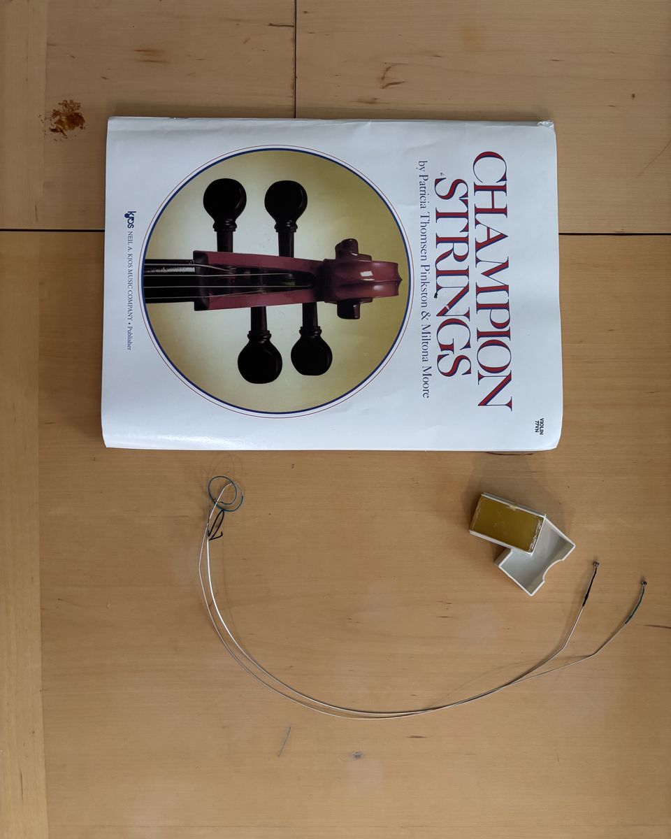 Full sized violin and bow Comes with case, 2 strings, rosin, and a book Barely used, like new