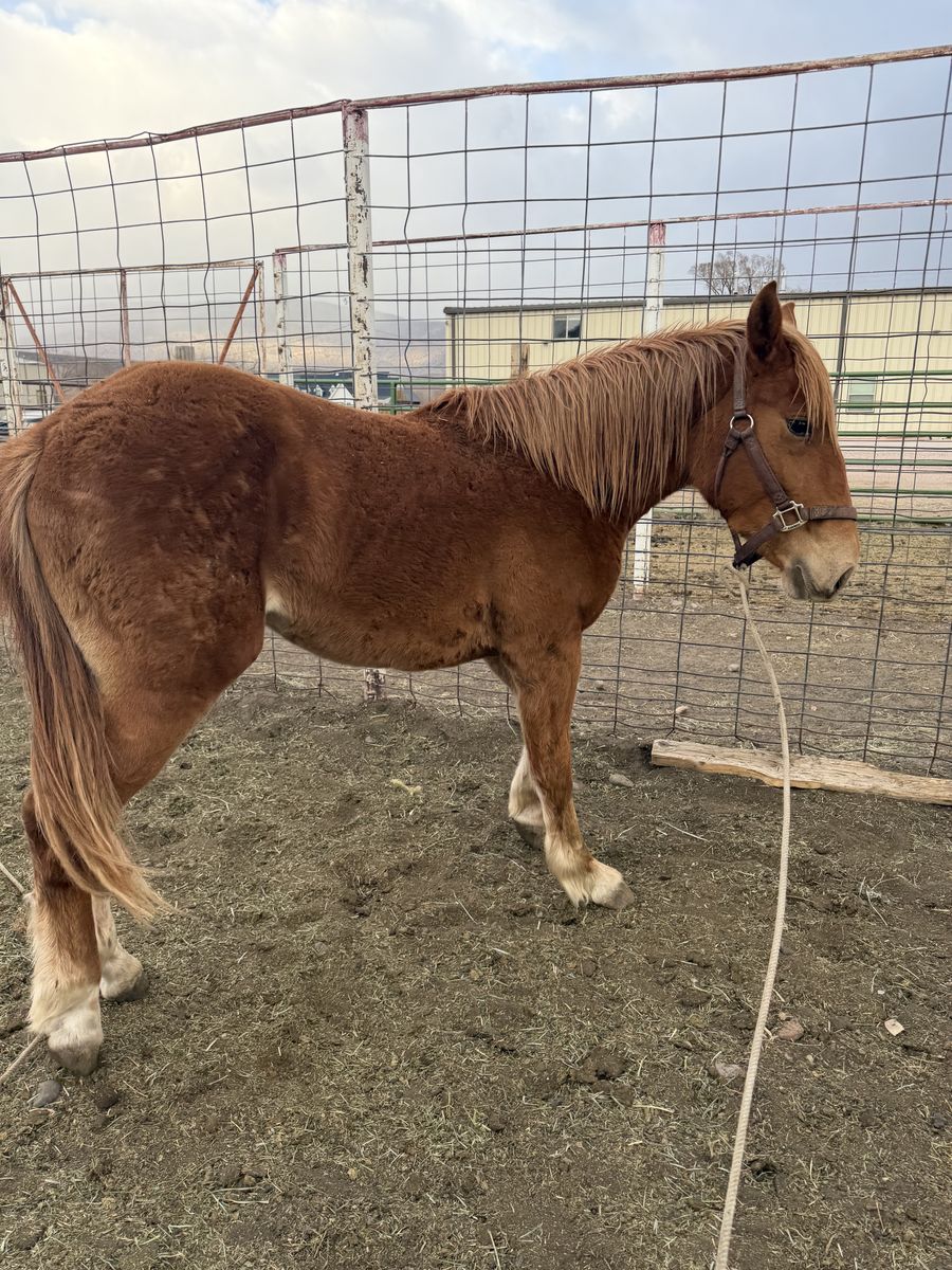 Coming 2 year old sorrel gelding! Good straight bones and good build! Getting him broke to lead. Stands about 14 hands right now just guessing haven’t actually measured him. Needs more time but I think he’ll make a great horse! Asking 1,000 obo