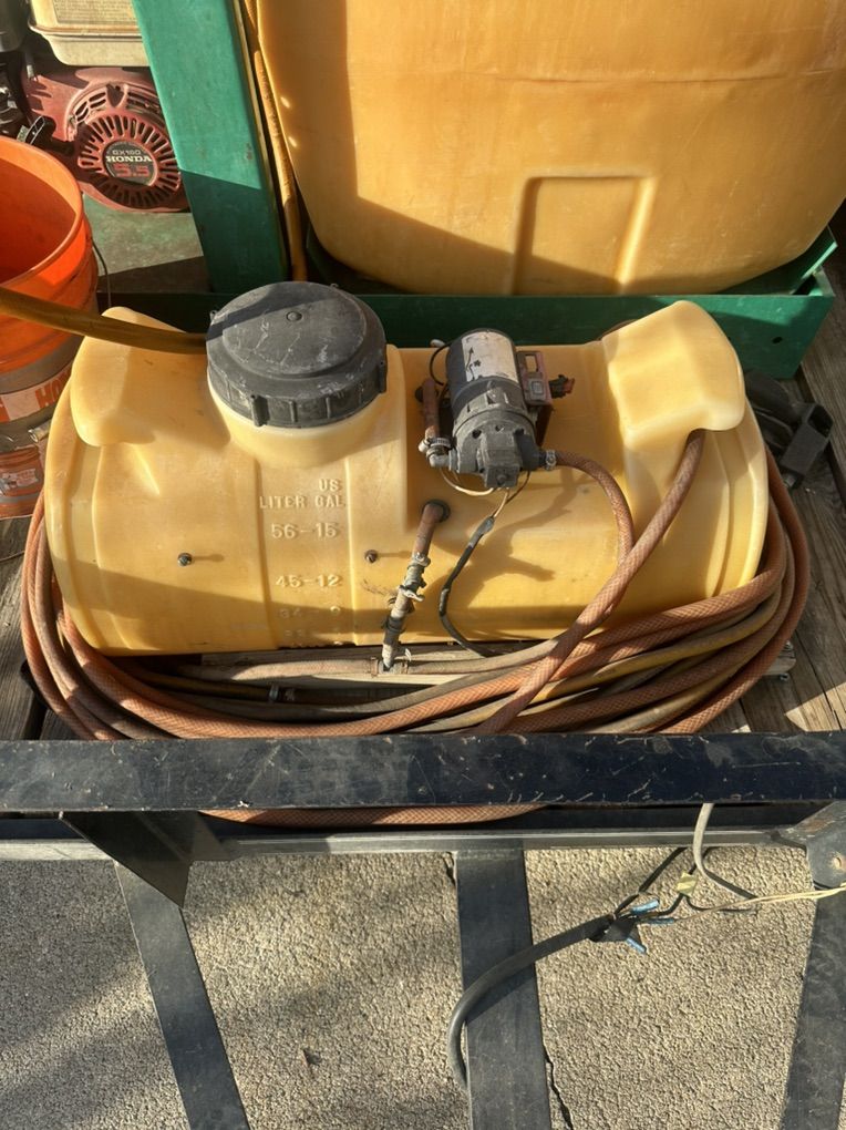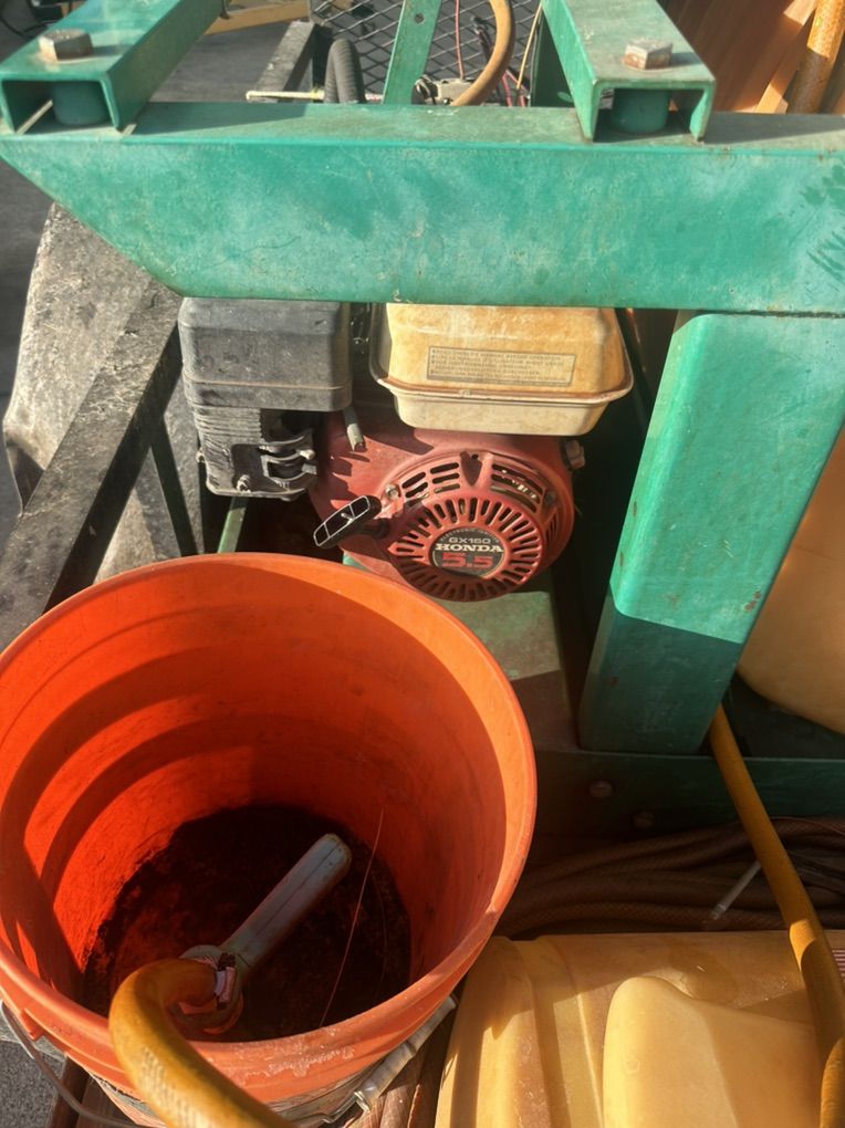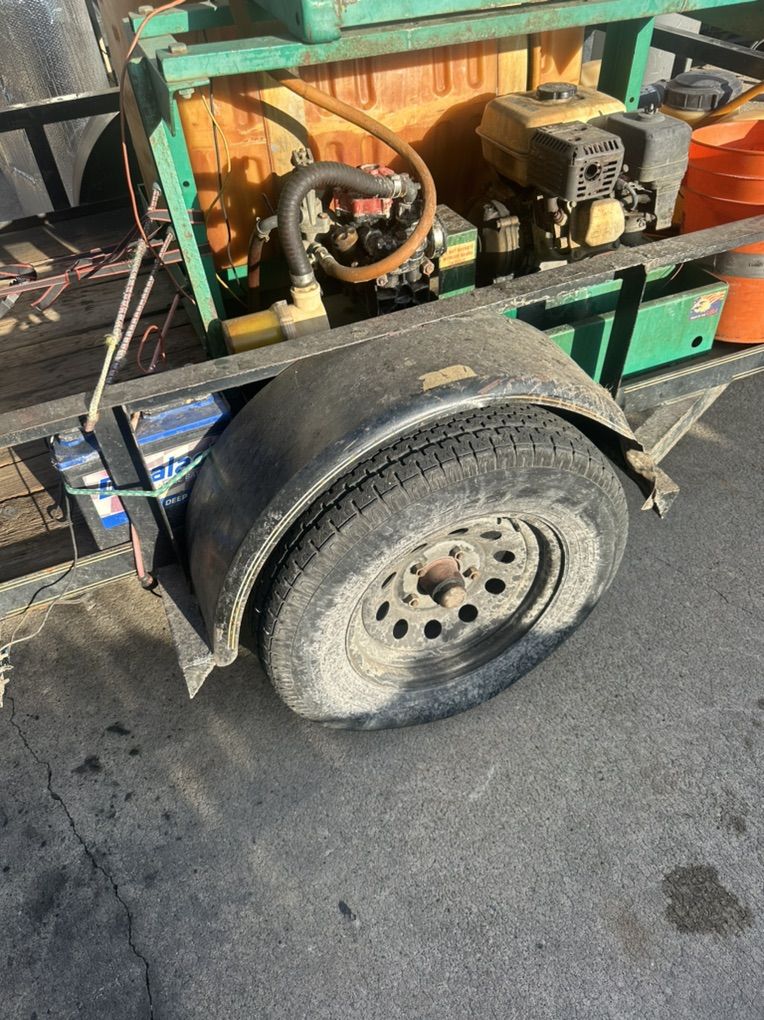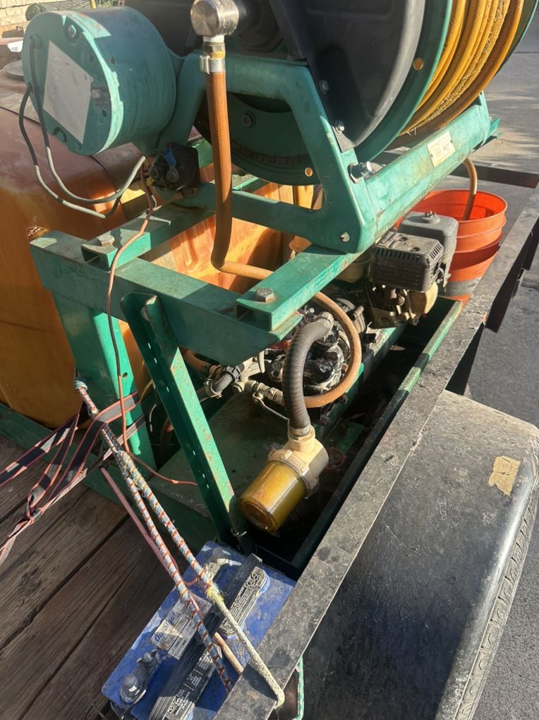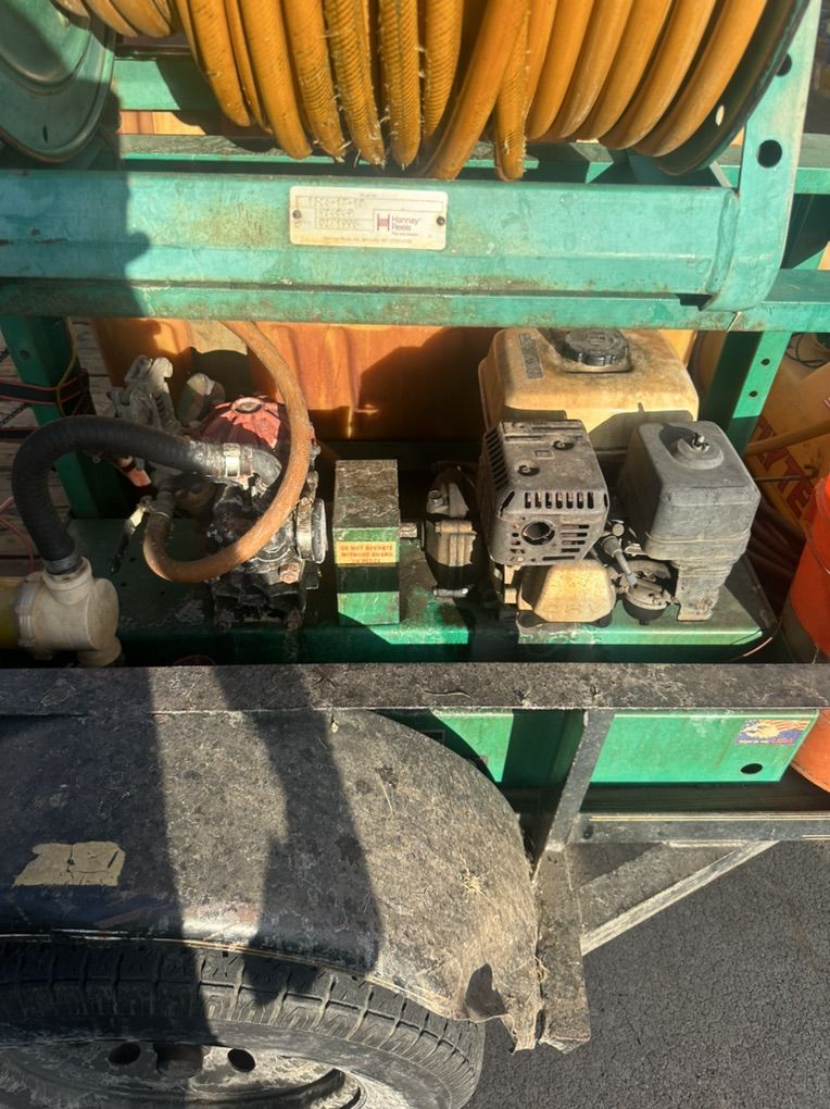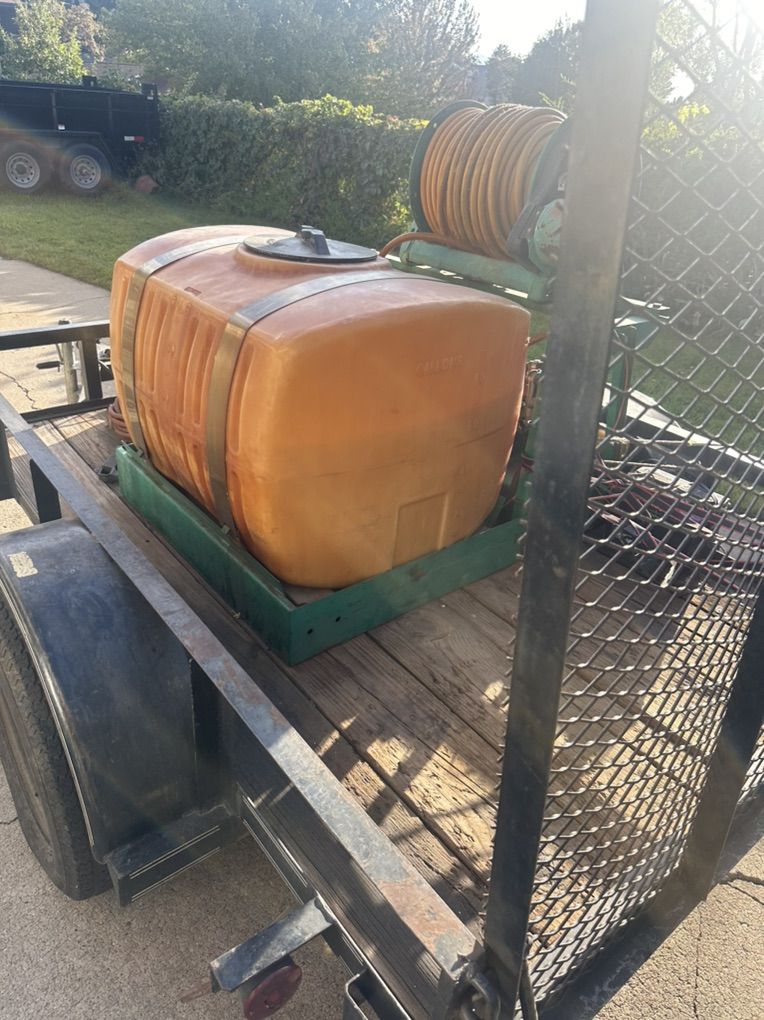 Lesco 100 gallon fertilizer tank and trailer, 11 x 6 single axle trailer. Also has 15 gallon roundup tank that is electric. Lesco tank has a Honda engine GX160 5.5 hp