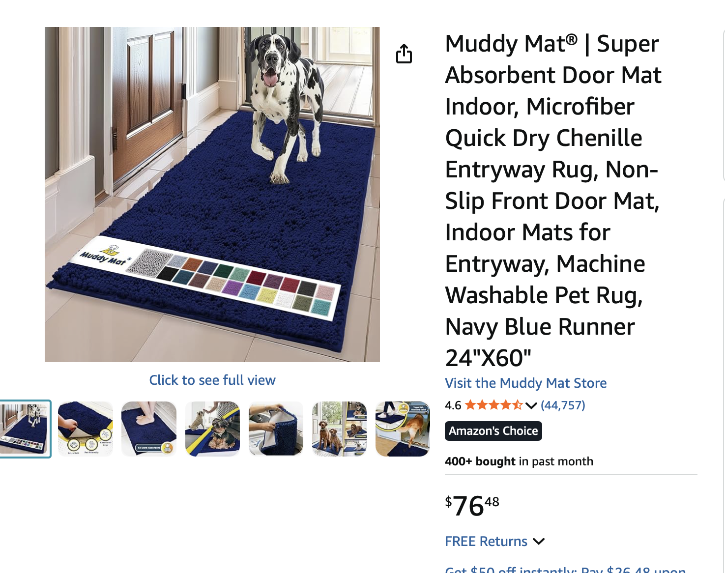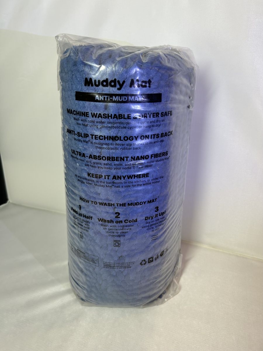 ZelleSealed in original packaging. This is the 24"x60" navy blue Muddy Mat runner, the one you've seen all over TV and online. Great for entryways, mudrooms, kitchens, bathrooms, or anywhere pets and people track in a mess. Sells for $76 online, grab it brand new here for less!