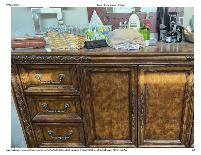 The dresser is 64" wide, 46" high, and 20" deep.