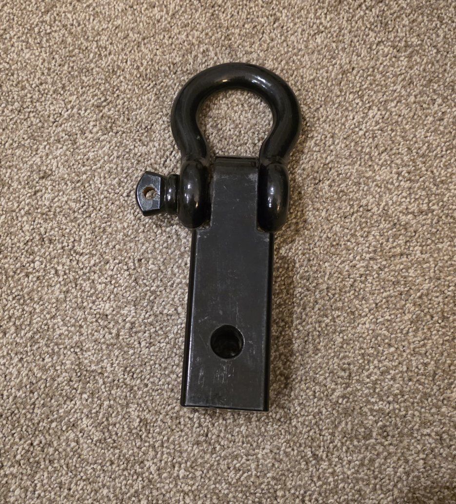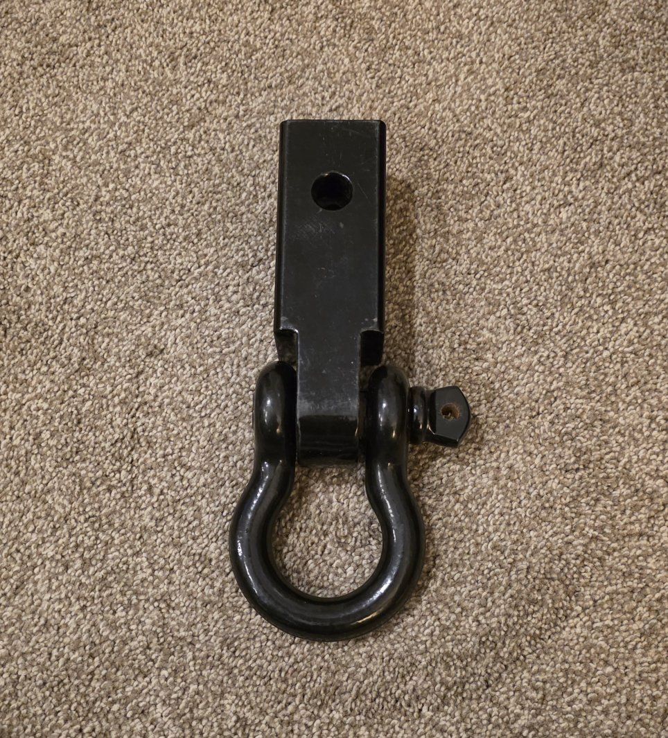 Selling a solid steel D-ring shackle mount for a 2" receiver hitch. Perfect for recoveries, off-road use, and securing tow straps. It’s used but in good working condition.