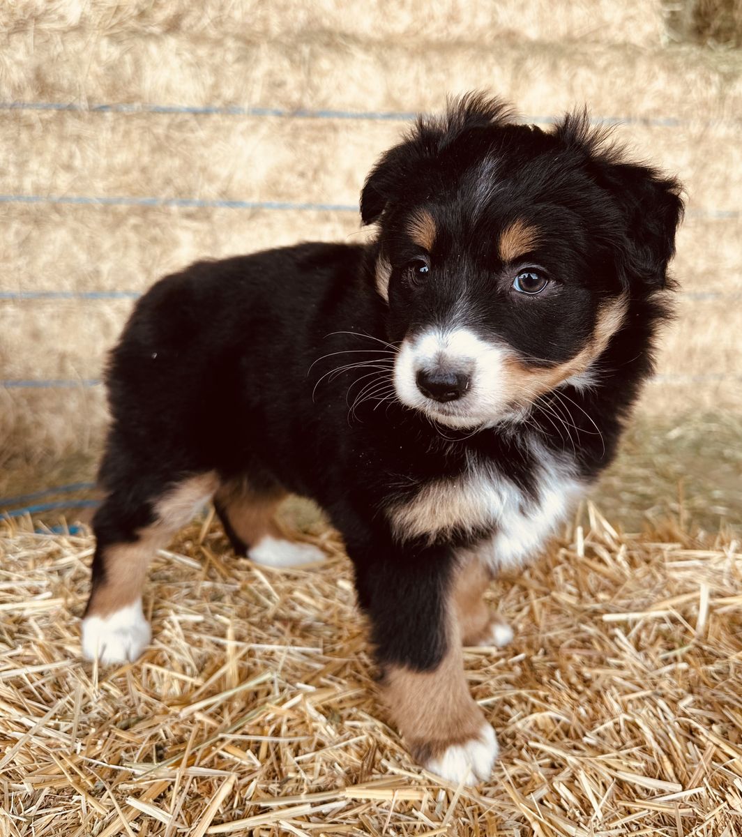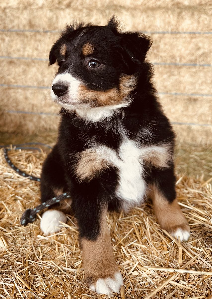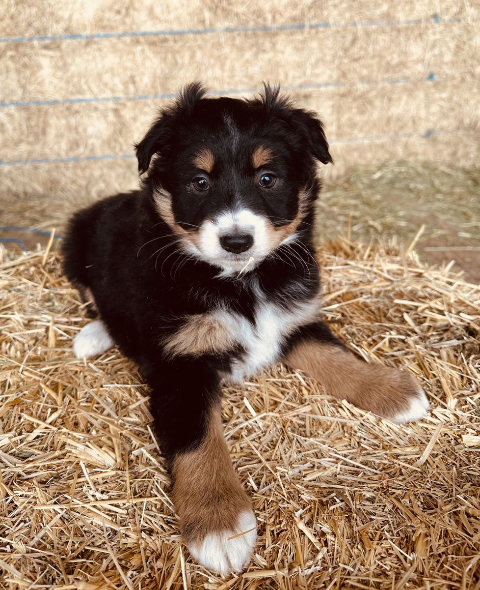 Standard size Whelping date: January 21 Release date: March 16 Dew claws removed Tails docked Healthy 1st vacc. & deworming One Black Tri w/white & copper trim, female One Red Tri w/white trim, female One Black Tri w/white trim, male $350 cash only Well loved, played with and have been exposed to children and started on leash training. For more info., Please call or text