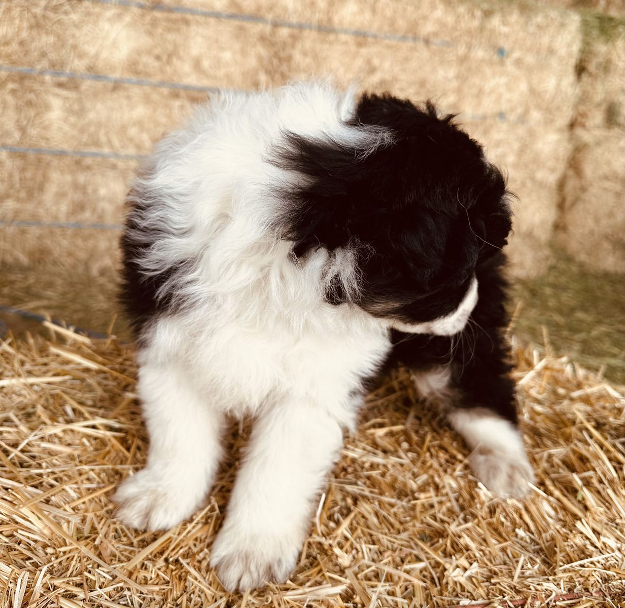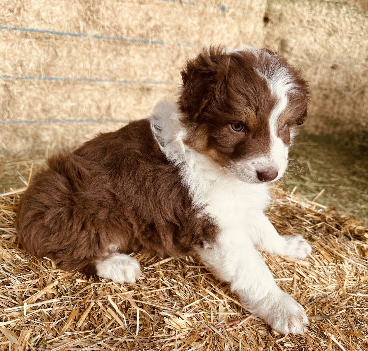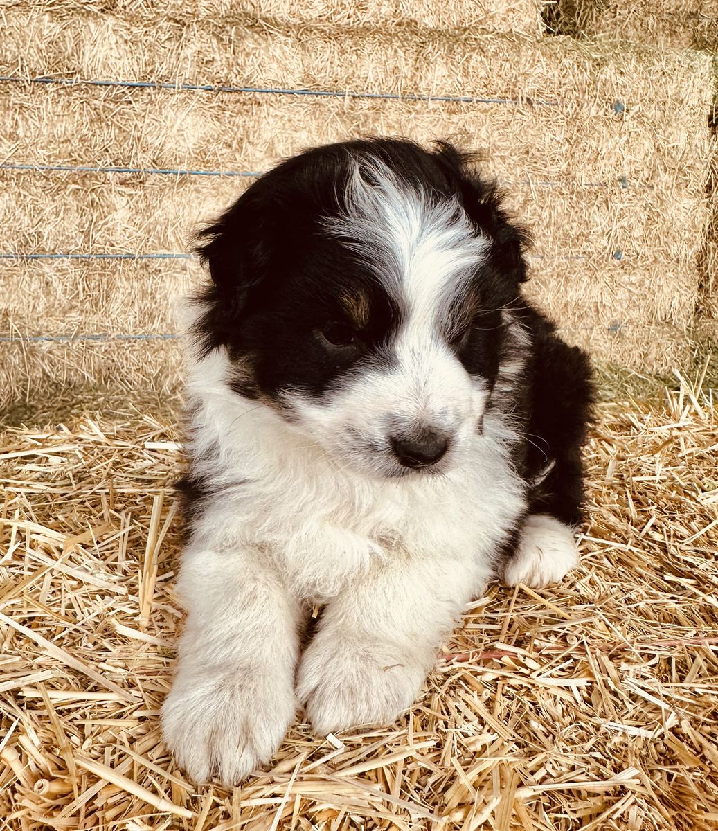 Standard size Whelping date: January 21 Release date: March 16 Dew claws removed Tails docked Healthy 1st vacc. & deworming One Black Tri w/white & copper trim, female One Red Tri w/white trim, female One Black Tri w/white trim, male $350 cash only Well loved, played with and have been exposed to children and started on leash training. For more info., Please call or text