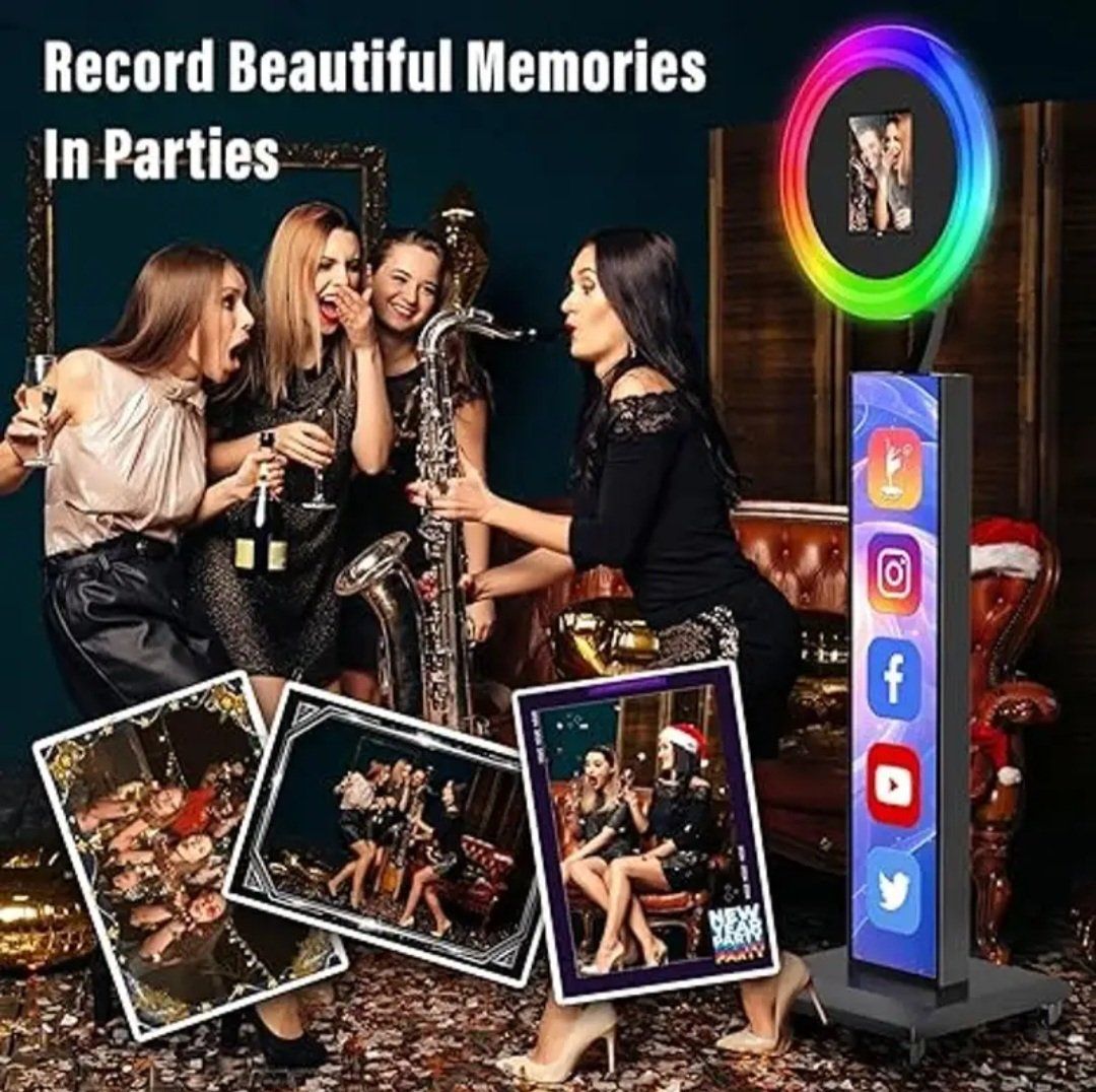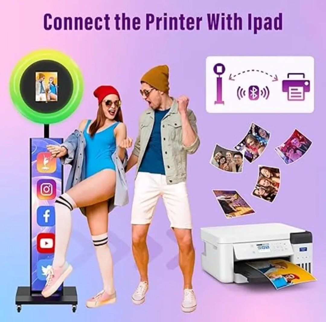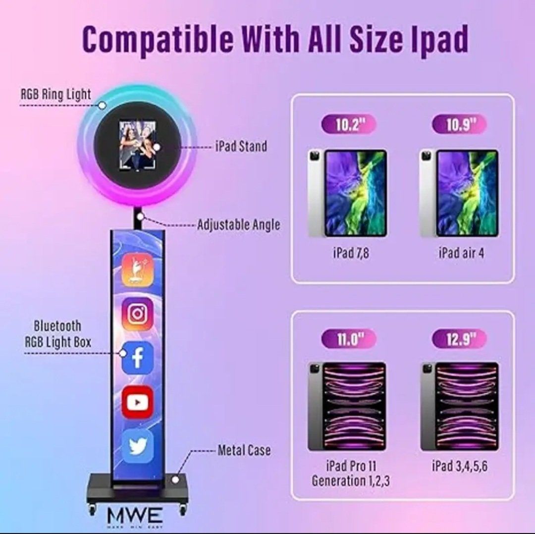JIYANG Portable Photo Booth Compatible with Any Ipad,Photo Booth Stand Shell with ChackTok PhotoBooth VIP Member and Flight Case,Free Custom Logo,Perfect for Parties,Wedding and Events(Black)