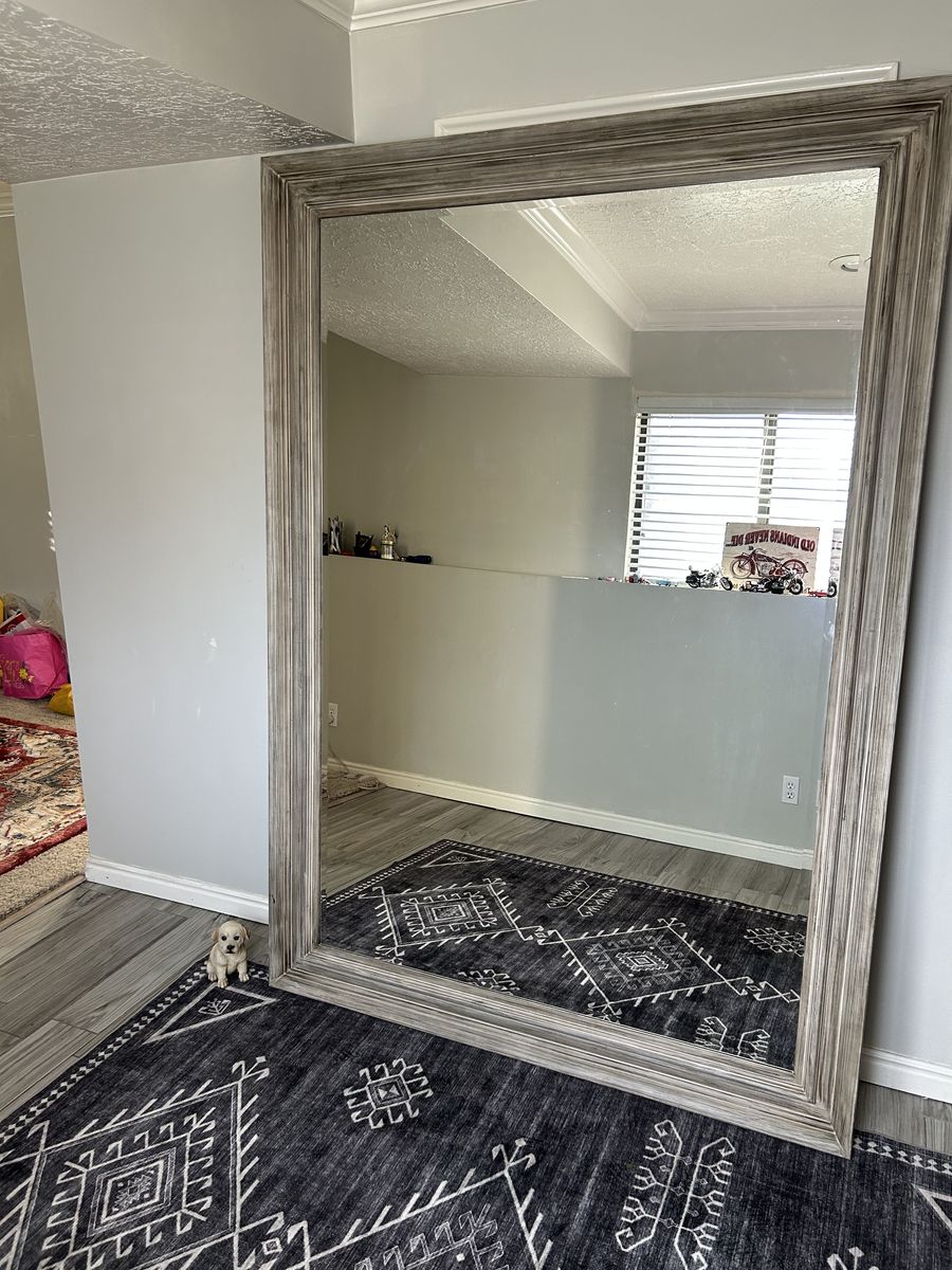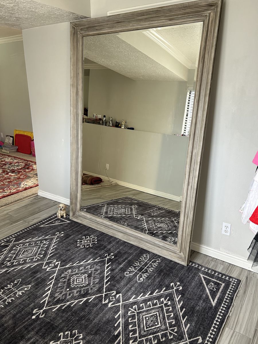 • Approximate size: 5 ft x 7 ft • Large full-length reflection • Sturdy, high-quality frame • Can be wall mounted or used as a leaning floor mirror • Great for dance, workouts, dressing, or photography