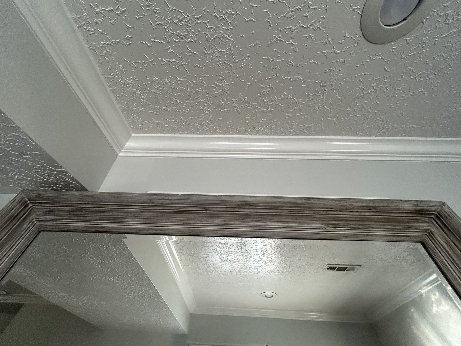 ApplePayBeautiful oversized mirror with a neutral wood-style frame that fits well with many décor styles. This mirror can be hung on the wall or used as a floor mirror leaning against the wall.