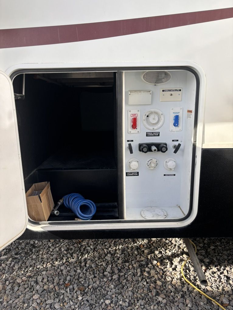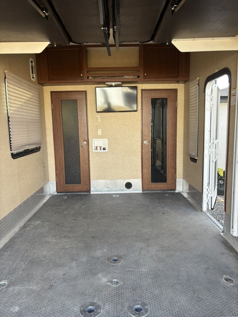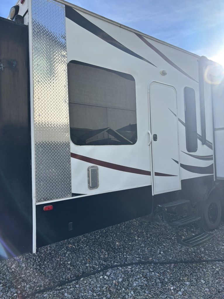 Up for sale is my 2014 Dutchman Voltage V3305. This trailer has been great for us but selling because we down graded on size. Everything works as it should and doesn’t have any leaks. The garage has the extension kit on it and fits my 4 seater turbo s with 35” tires on it. The fuel cell works and pumps fuel great. There is a table that can be put up in front of the couch as well as a dining room table in the garage. Fire place works great and puts out some great heat. Has had all new sink faucets and shower faucet recently. Generator also has had regular maintenance every year before the new season. It does have a rebuilt tile due to a tree hitting a window and siding on the rear but it has been replaced and sealed back up check last picture. Text or call with any questions. Thanks