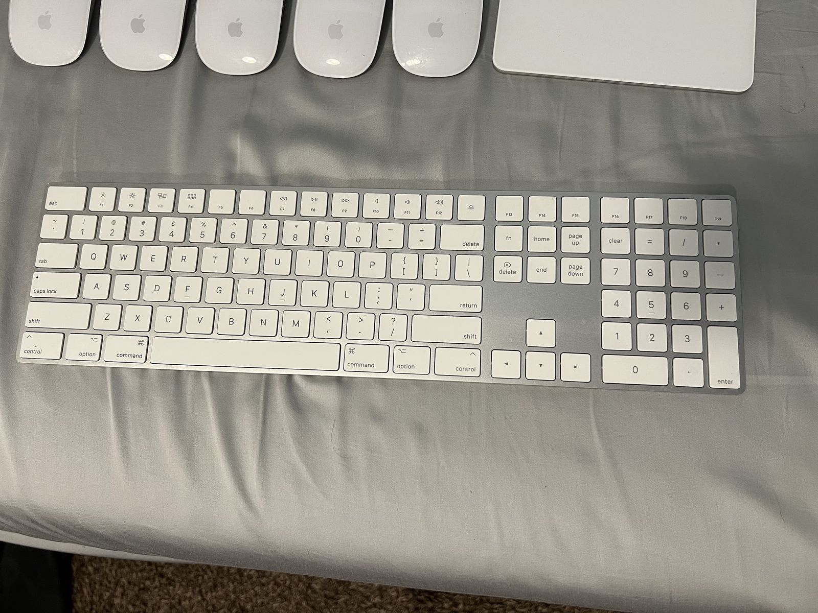 5 Apple Magic Keyboards (Lightning): Slim design, great tactile feel. Some have minor cosmetic marks from office use, but all keys work perfectly. — $45
