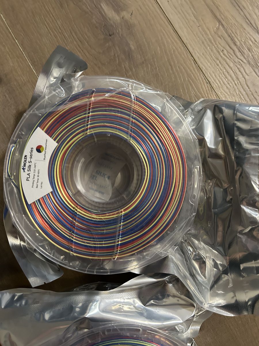 VenmoWe got a lot of filament, but 3-D printer was too complicated so we sent it back. blue and black and the rainbow with pink are free because there is not a lot left. All the rest are either completely full or more than halfway. if you buy them all it is $65 If not then $15 each.
