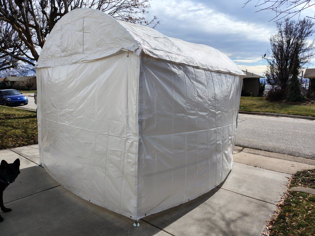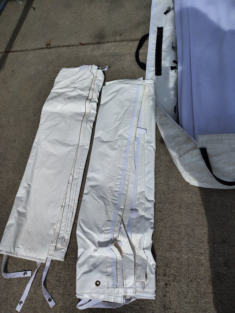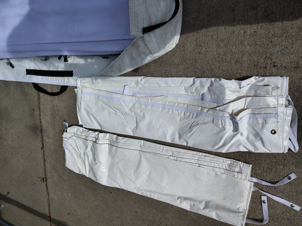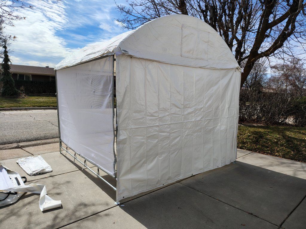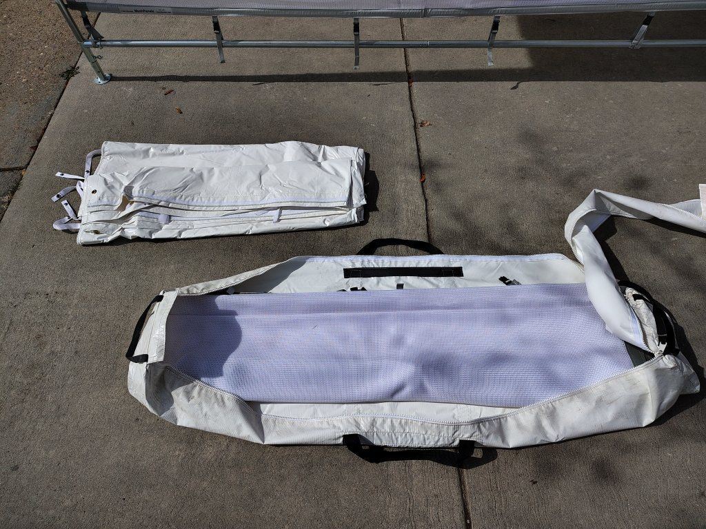 This Trimline 10x10 Canopy is made by Flourish. It was probably used 4 or 5 times and is like new! Included are all 4 walls and three mesh panel display walls for hanging artwork. The mesh panels can be hung with or without the walls depending on the weather. There are also 4 sandbags included that aren't shown in the photos.