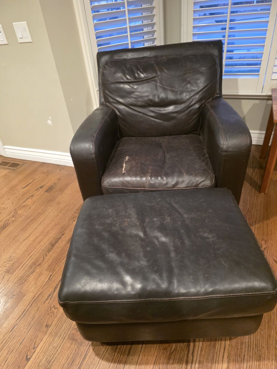 Getting rid of our Bassett couch, chair and ottoman. Some tears in seat. Good bones. Can be recovered. Free, but must pick up. Sandy, UT.