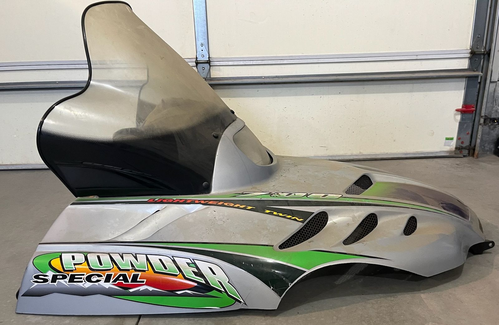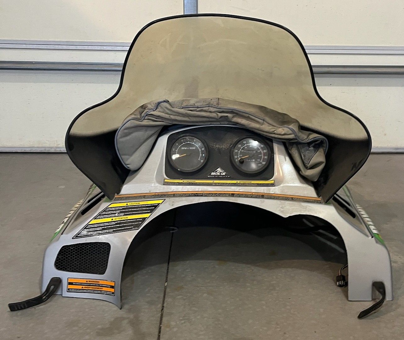 2000 Arctic Cat 700 Powder Special LE Hood Assem (speedometer, tachometer, headlight). Speedometer & tachometer work. Mounting bolts included. Minor cracks. Rubber straps in good condition. Windshield is weathered but not cracked. If you need any other parts from this machine, reach out!