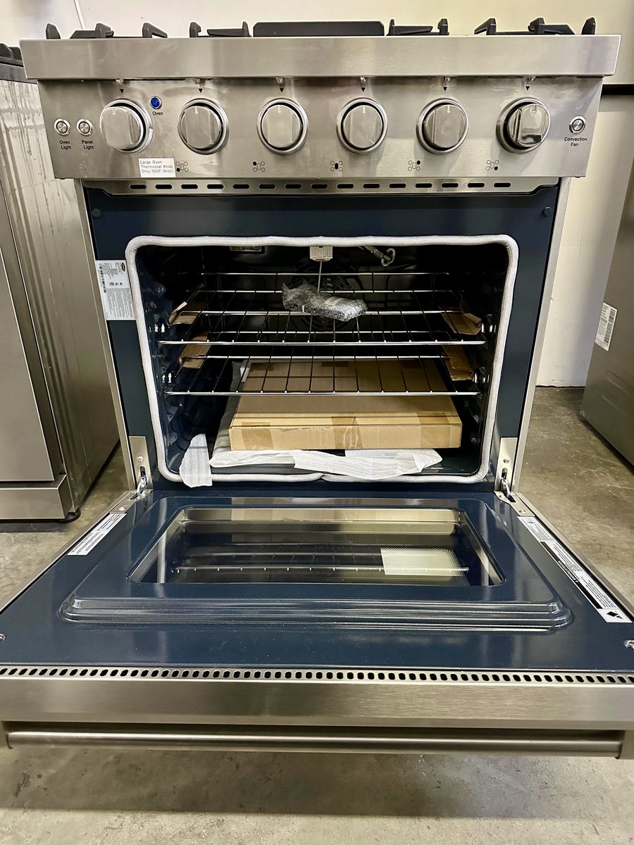 ZelleExcellent conditions with convection, oven capacity: 4.8 cu. ft. Dimensions: 30 (W) x 28.31 (D with handle) x 36.6 (H)