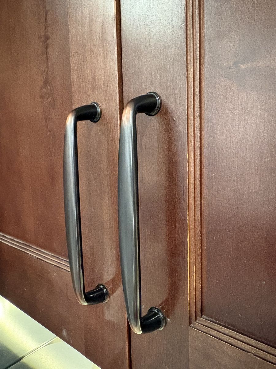I have 37 oil rubber bronze drawer pulls for sale. Very solid in like new condition. Length from screw hole to screw hole is 6-1/4”.