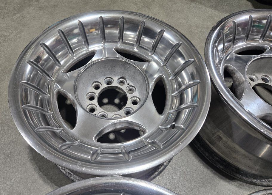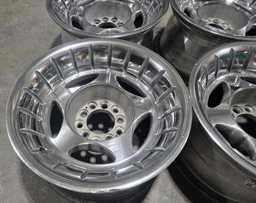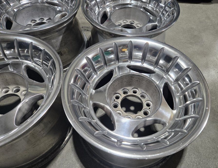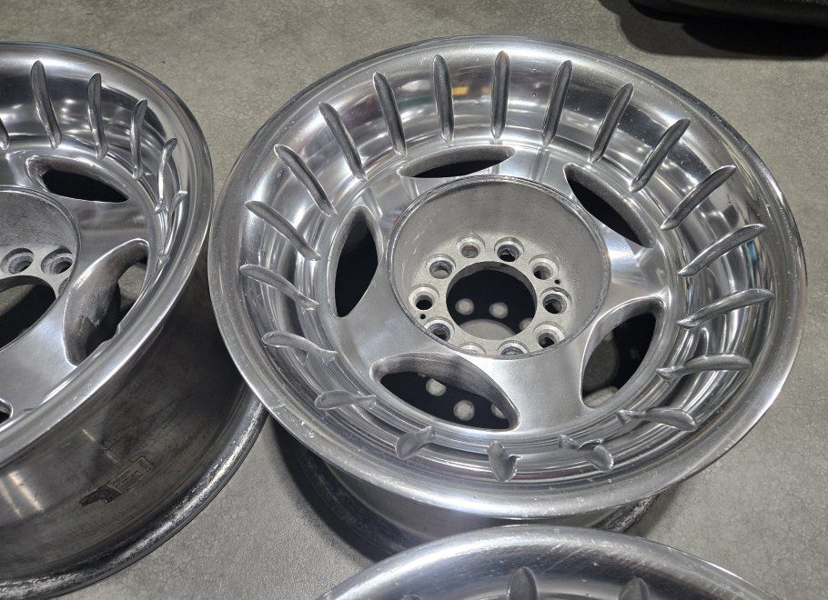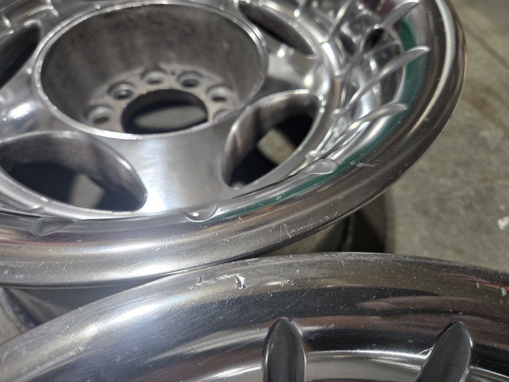15" diameter 8" width 5x4.5 and 5x4.75 lug patterns 3.25" back spacing 3.125" center bore