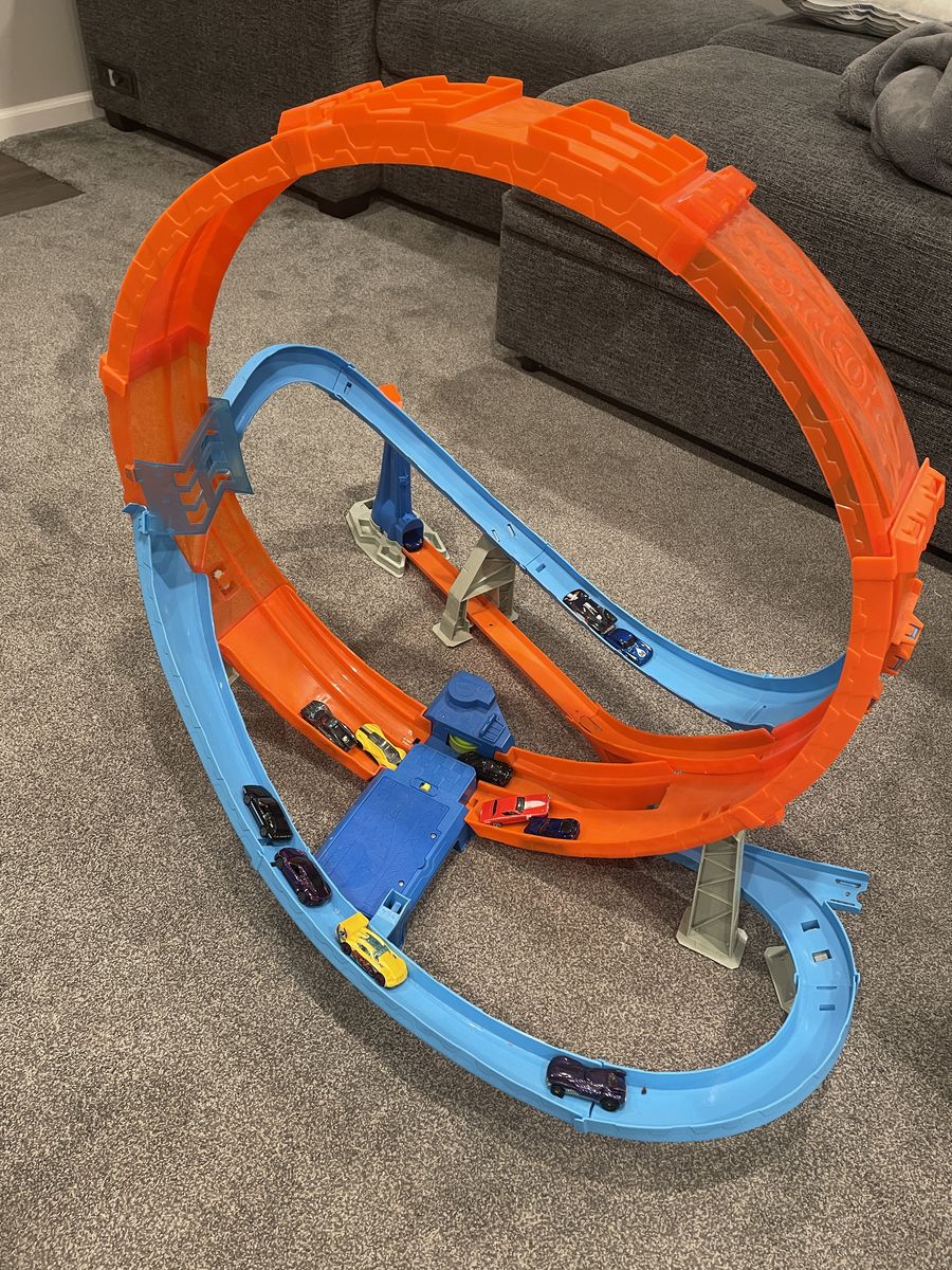 VenmoHot Wheels Toy Car Track Set Massive Loop Mayhem. 28" tall loop. Still works. Gently used for a few months and promptly forgotten about, as most Christmas presents are. Son has outgrown it and would rather have some cash. Appears to be discontinued and might be a collector item at this point because I can't find it on Mattel's website or Target's website. Walmart's website has one for $130 and Amazon has one for $110. Call or text. Cash or Venmo only. No exceptions.