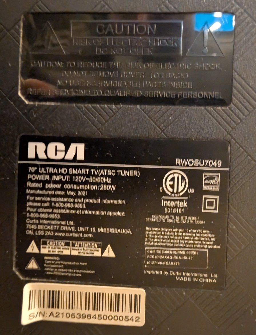 VenmoThe RCA RWOSU7049 is a 70-inch 4K UHD (3840x2160) Smart TV featuring webOS, HDR10 support, and a 60Hz refresh rate. It includes built-in Wi-Fi, three HDMI ports, and two USB ports for streaming apps like Netflix and YouTube.