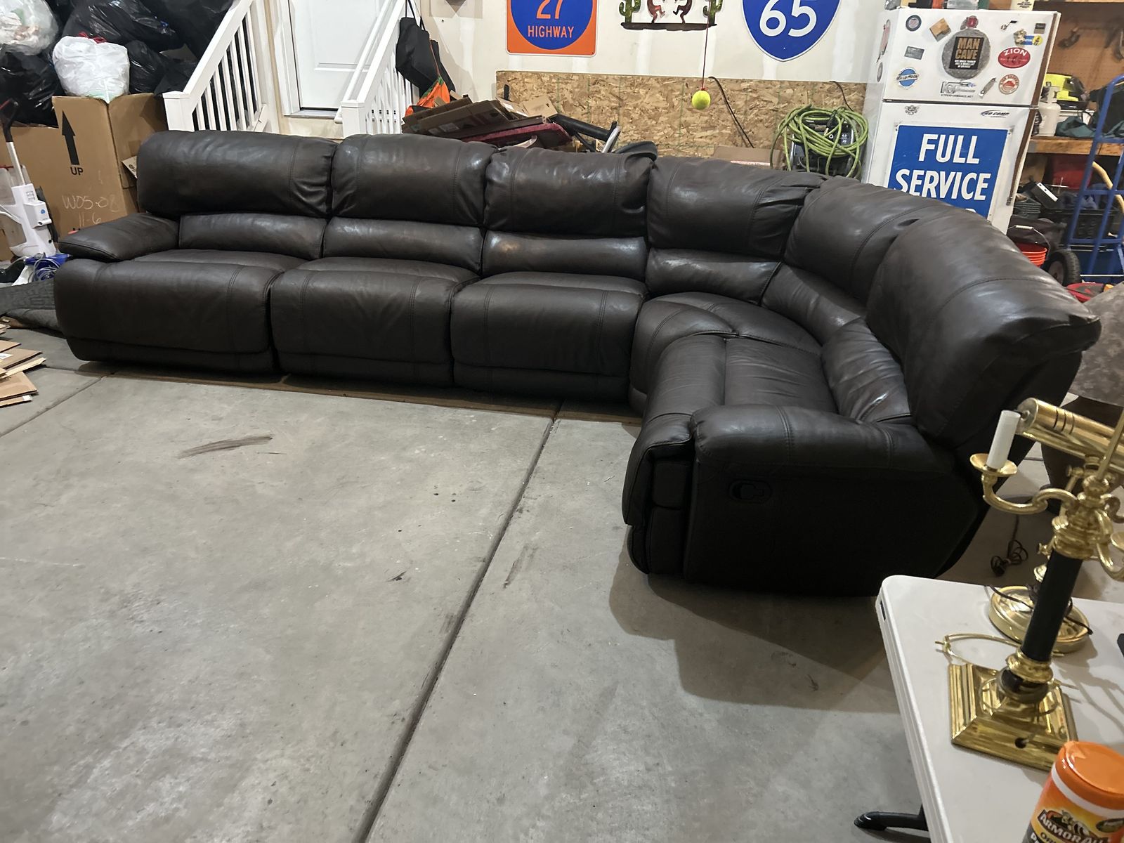 PayPalNice 5 piece leather sectional with 3 reclining seats. Very comfortable couch with minimal wear. The only reason we are selling this couch is we are moving out of state The couch was purchased at Furniture Row in Draper in 2014 and has been well cared for. The leather has been touched up is very durable. It can be set up in different ways.