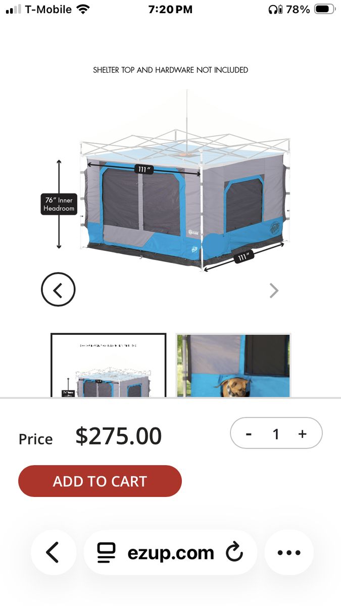 The Camping Cube' 6.4 tent is a spacious and easy-to-set-up camping accessory product for you, your family, and your next fun trip. Turn your existing E-Z UP® canopy into a camping haven, or build your own custom camping E-Z UP® canopy and Camping Cube™ set-up from scratch. • E-Z UP® Canopy Not Included • Available for straight leg canopies • Oversize entry door • Three power pockets • Pet portal • Compatible with the Pyramid™, , Vantage™, Enterprise™ , and Eclipse™ 10' × 10' Canopy