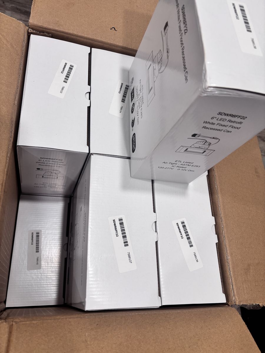 PayPalElectrix Model TD0201IL-D046 6 Retrofit Fixed Flood Lights SDWR6FF22. New in box with 12 individual Lights. Dimmable LED Driver Suitable for damp locations If interested please call or text Jamie at 385-471-4333. Thank you.