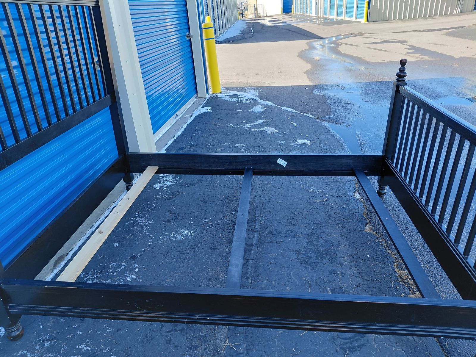 The bed is structurally sound. We just don't need it anymore. It just needs a new home. From a smoke-free home. Must see. Please note that you will need a truck, trailer, or large SUV to transport the item home. Sorry, the bed will not fit in or on a car, van, or small SUV. The bed comes with the headboard, footboard, side rails, and support slats.