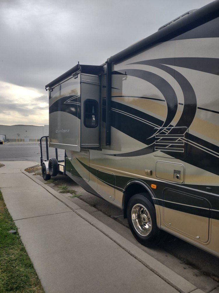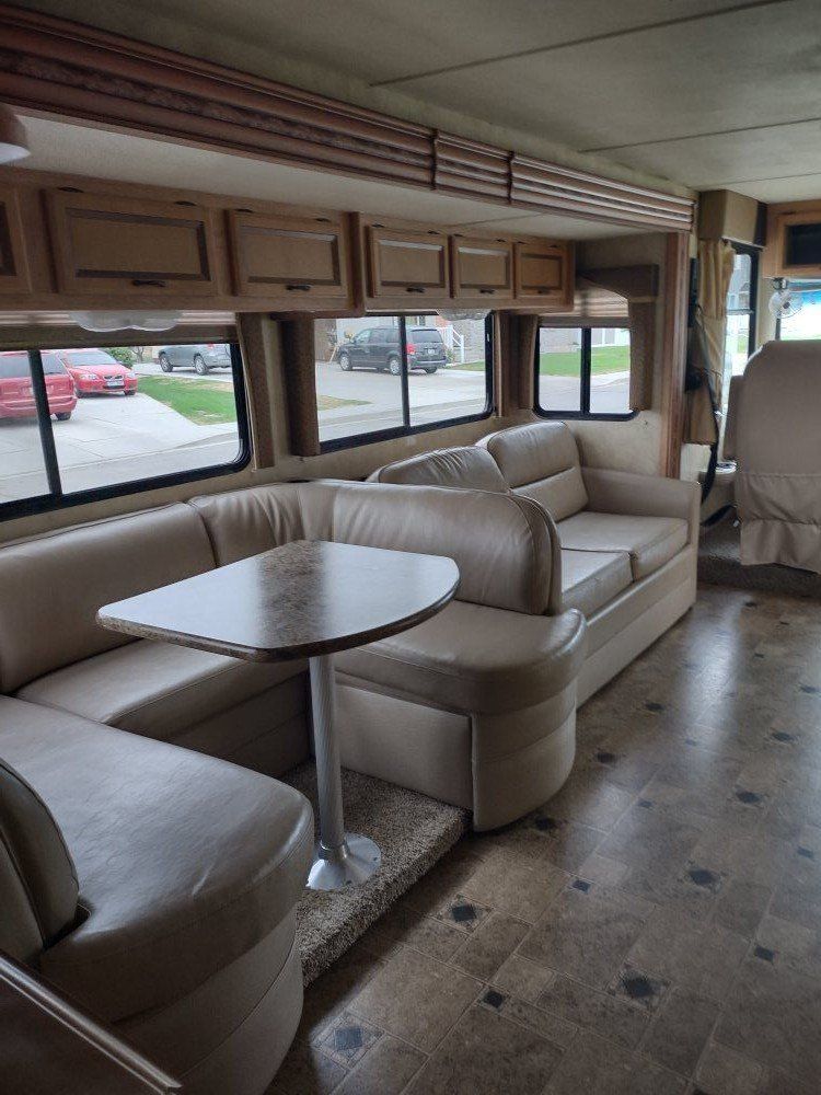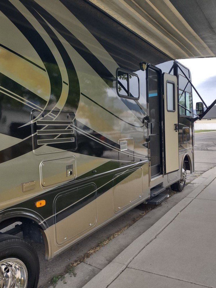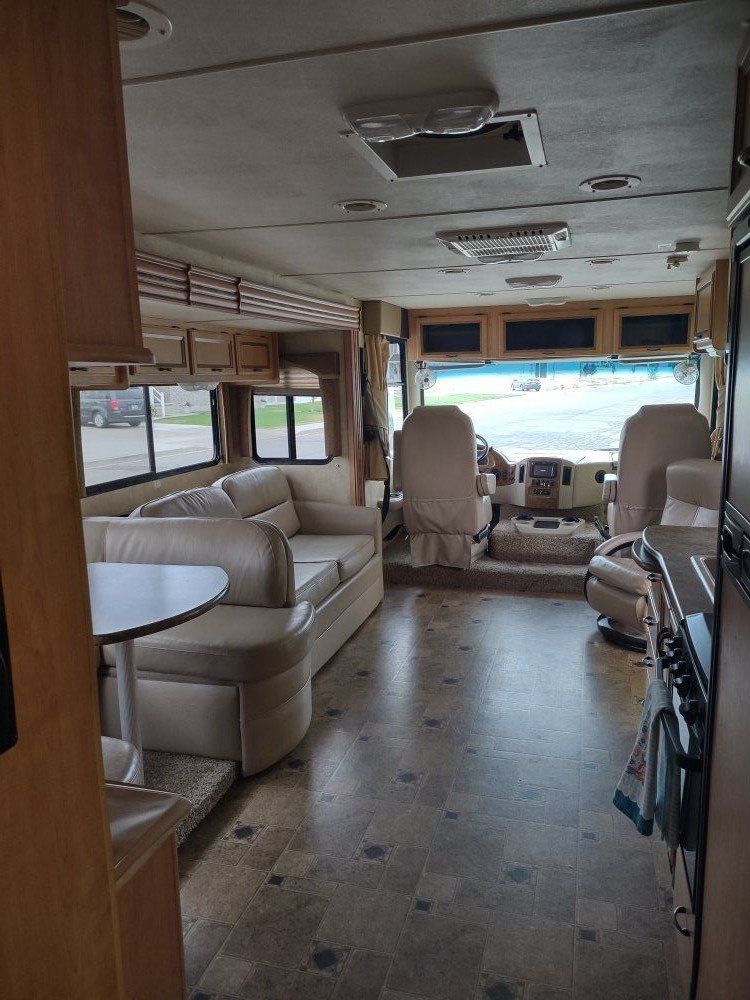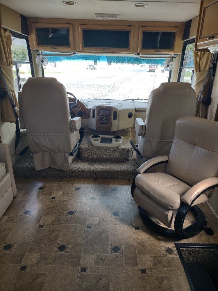 2 air conditioners leveling automatic jacks tons of storage shower with skylight nice queen size bed memory foam 2 big slide outs jack knife soata sleeps 2 or 3 kitchen table folds down into a queen size bed 2 TVs satellite DVDs cable ready tires in good shape out shower New batteries all the way around coach paid 964.00 28,00 replacing hydraulic hoses for leveling system class A coach in exleant shape every thing works has it should miles 44,134 v-10 runs excellent power awning awning over both side outs cameras on both side mirrors back up camera asking 49,995 any questions text or call 435 -660-6086 ask for Ron