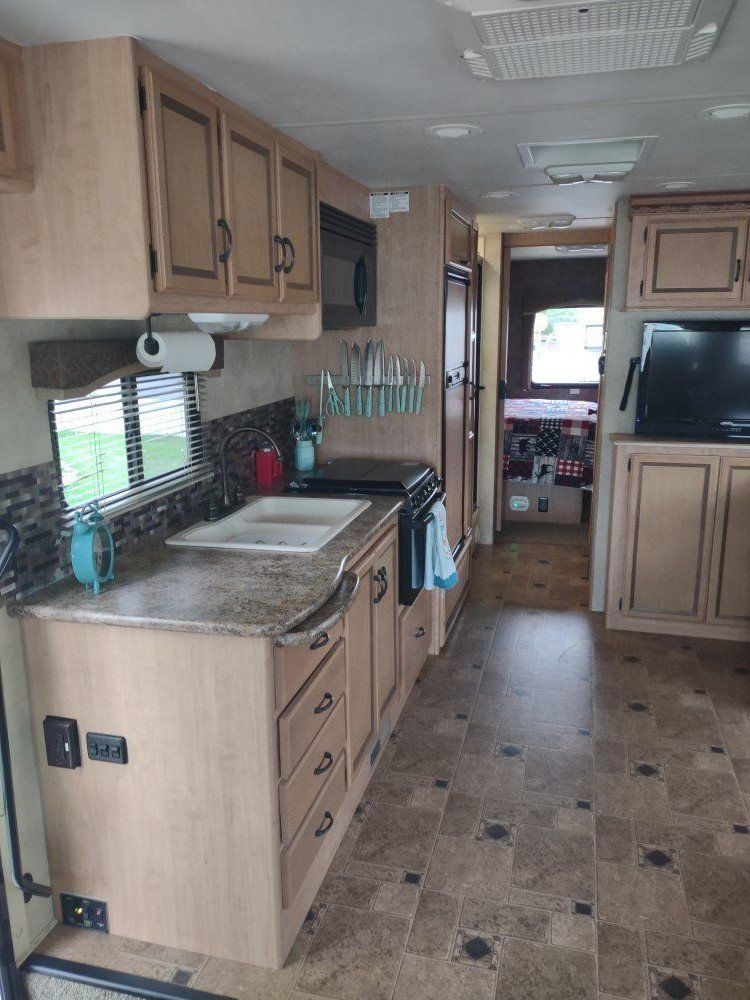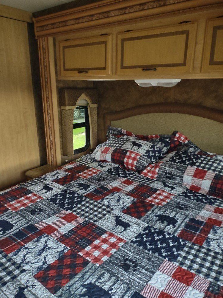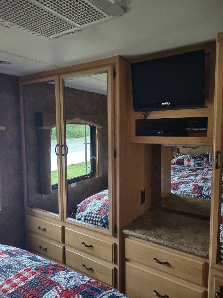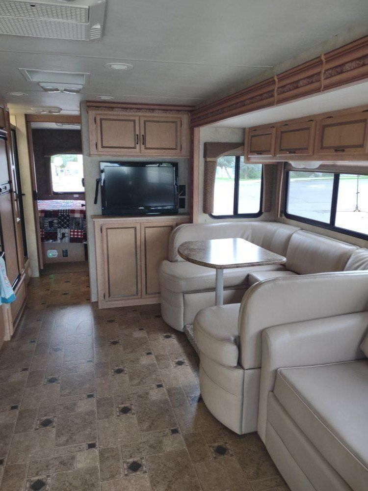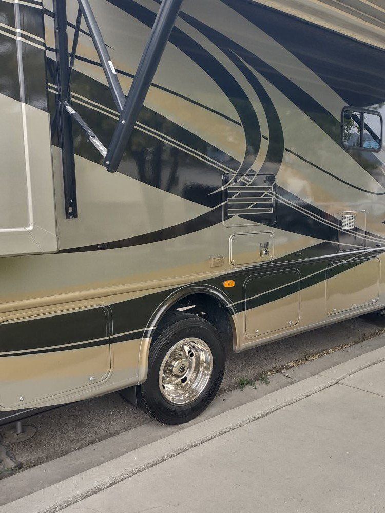 2 air conditioners leveling automatic jacks tons of storage shower with skylight nice queen size bed memory foam 2 big slide outs jack knife soata sleeps 2 or 3 kitchen table folds down into a queen size bed 2 TVs satellite DVDs cable ready tires in good shape out shower New batteries all the way around coach paid 964.00 28,00 replacing hydraulic hoses for leveling system class A coach in exleant shape every thing works has it should miles 44,134 v-10 runs excellent power awning awning over both side outs cameras on both side mirrors back up camera asking 49,995 any questions text or call 435 -660-6086 ask for Ron