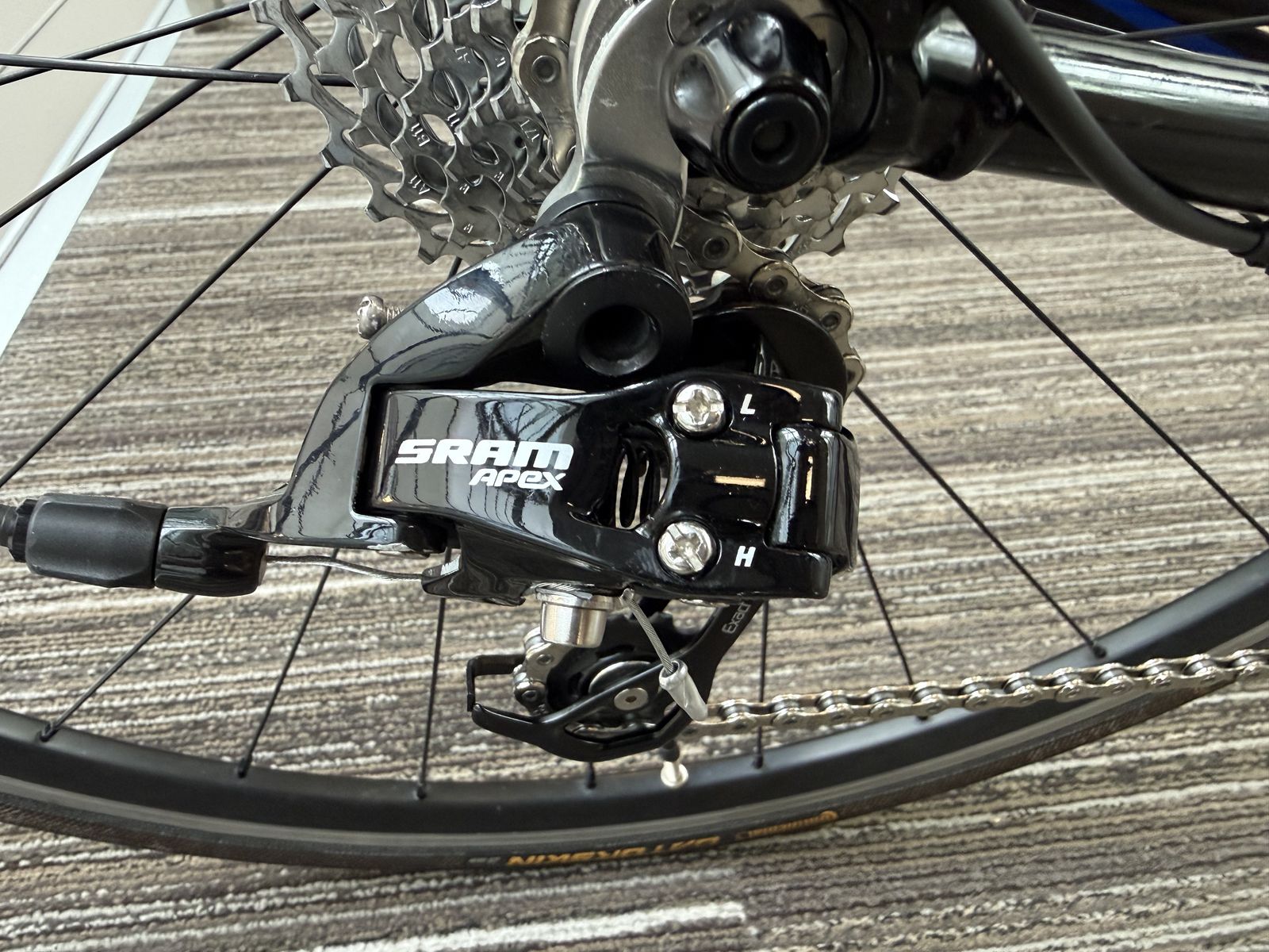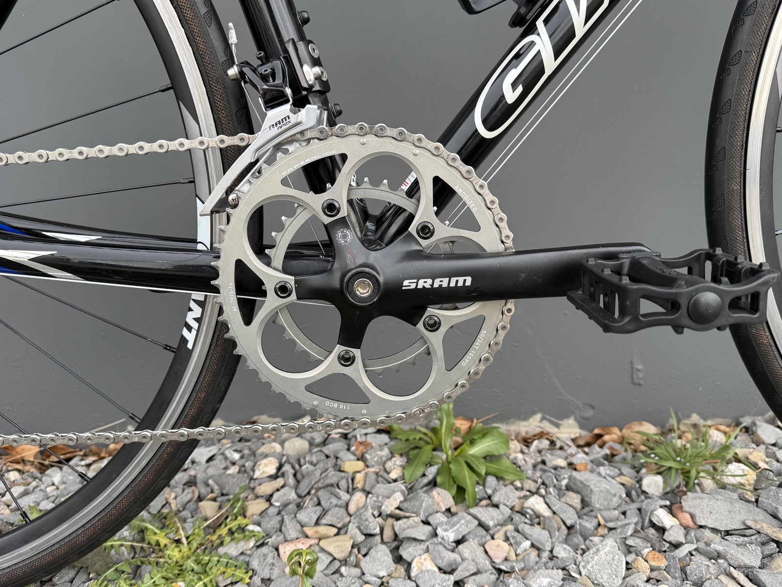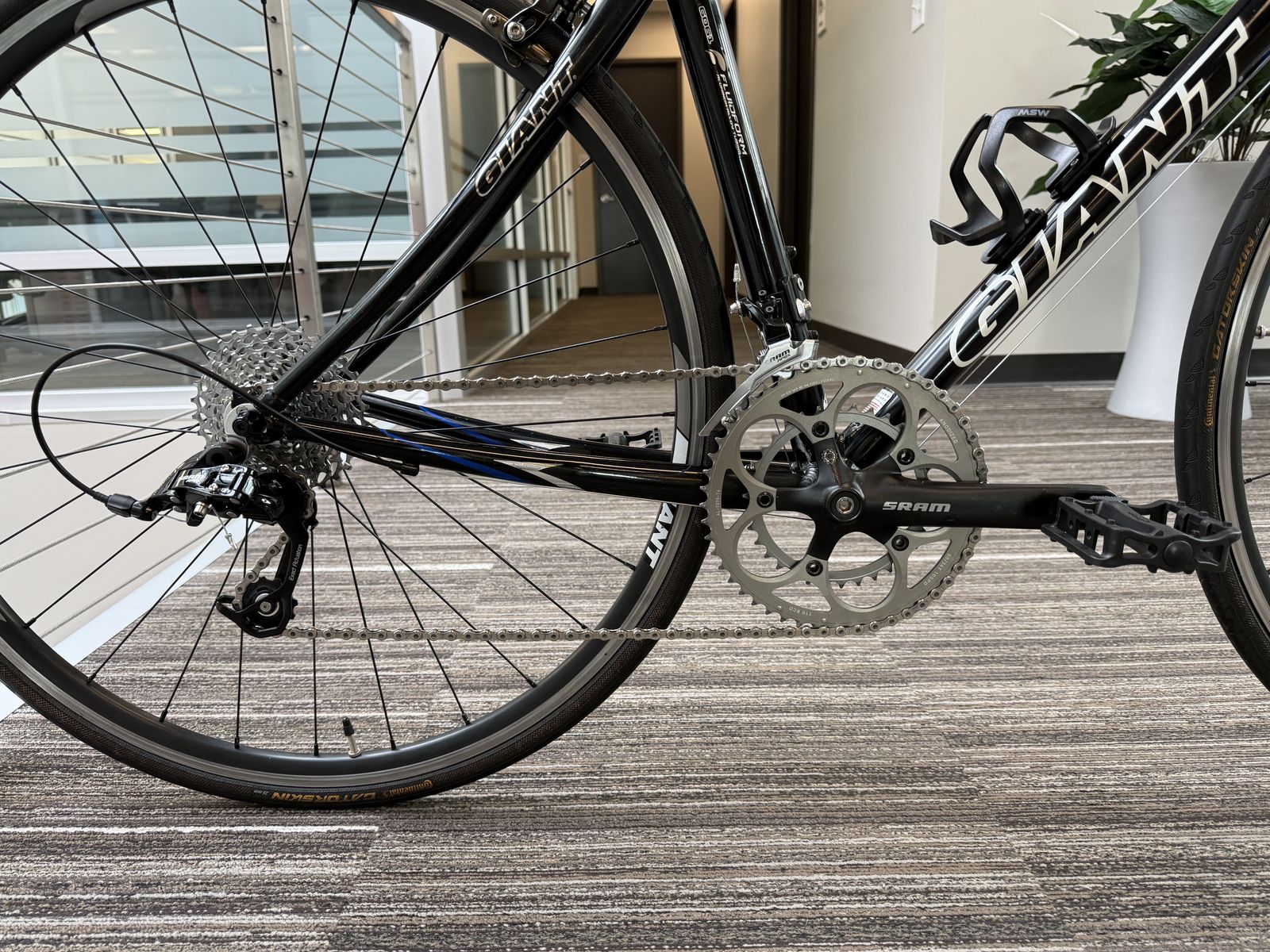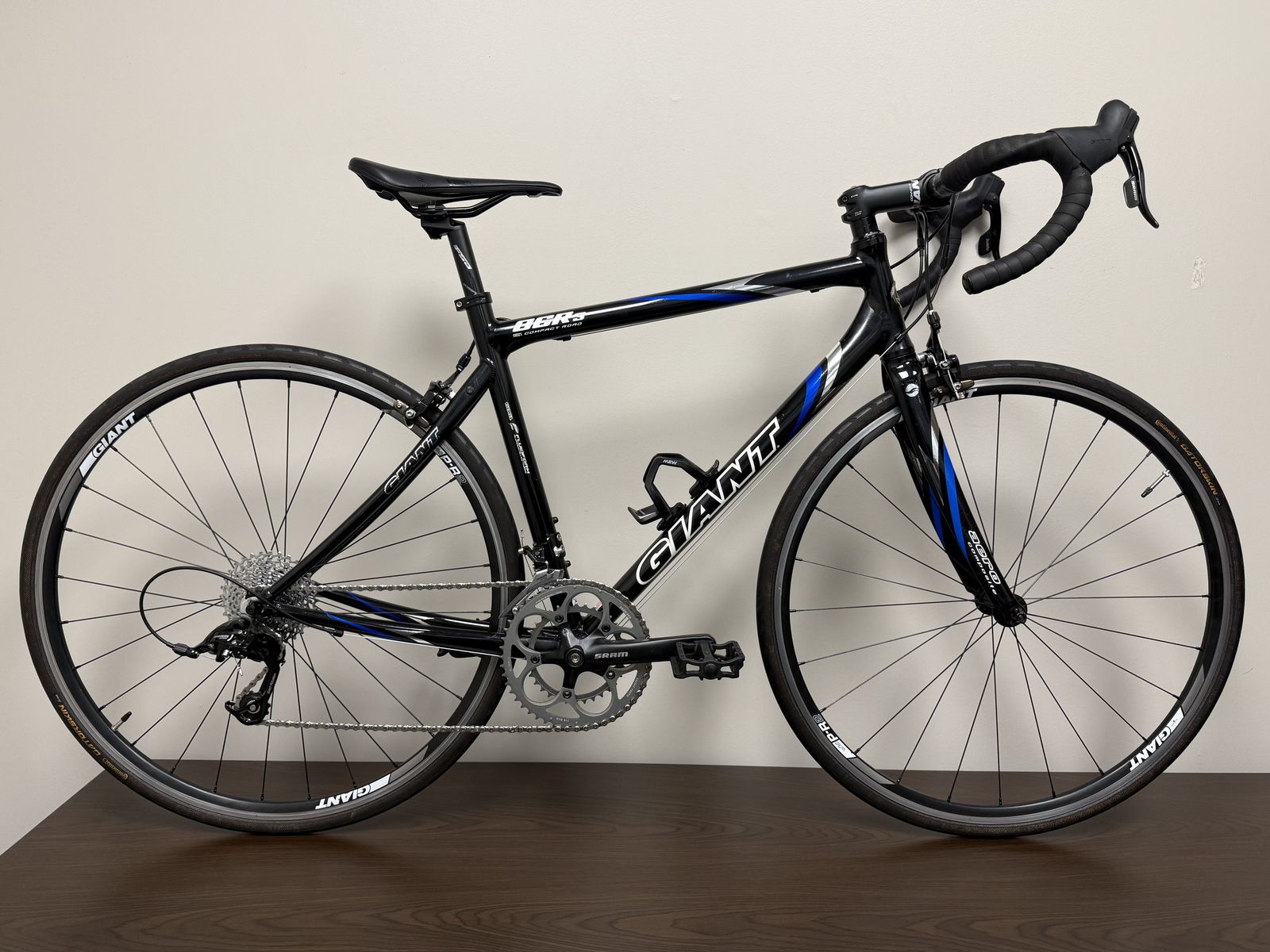 • Full SRAM Apex 10-speed drivetrain • 170 mm compact crankset (50/34) • 11–32 cassette with wide gear range — excellent for climbing • Giant P-R2 alloy wheelset • Continental Gatorskin 25 mm tires with plenty of life remaining