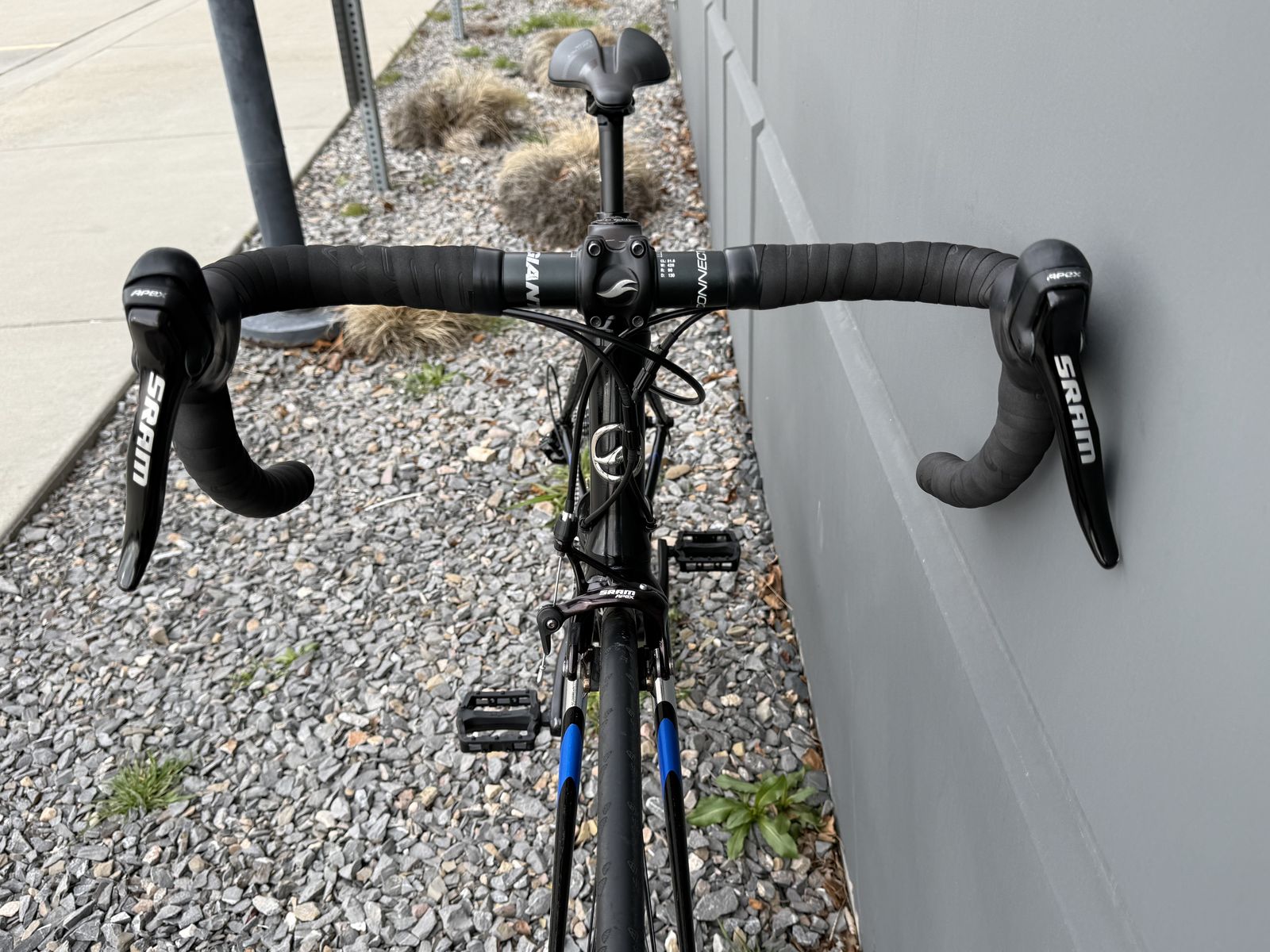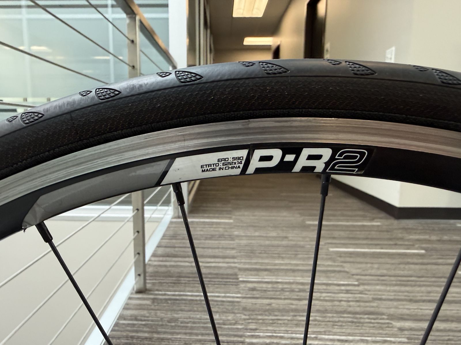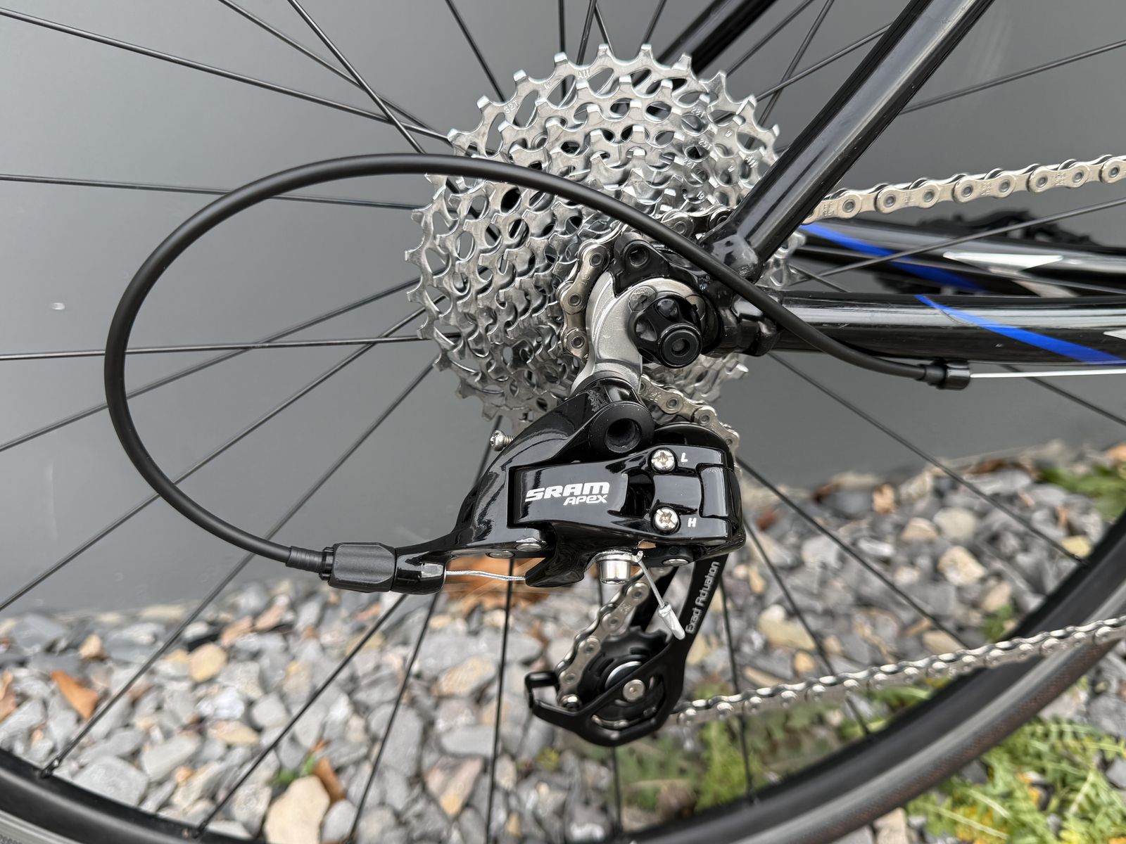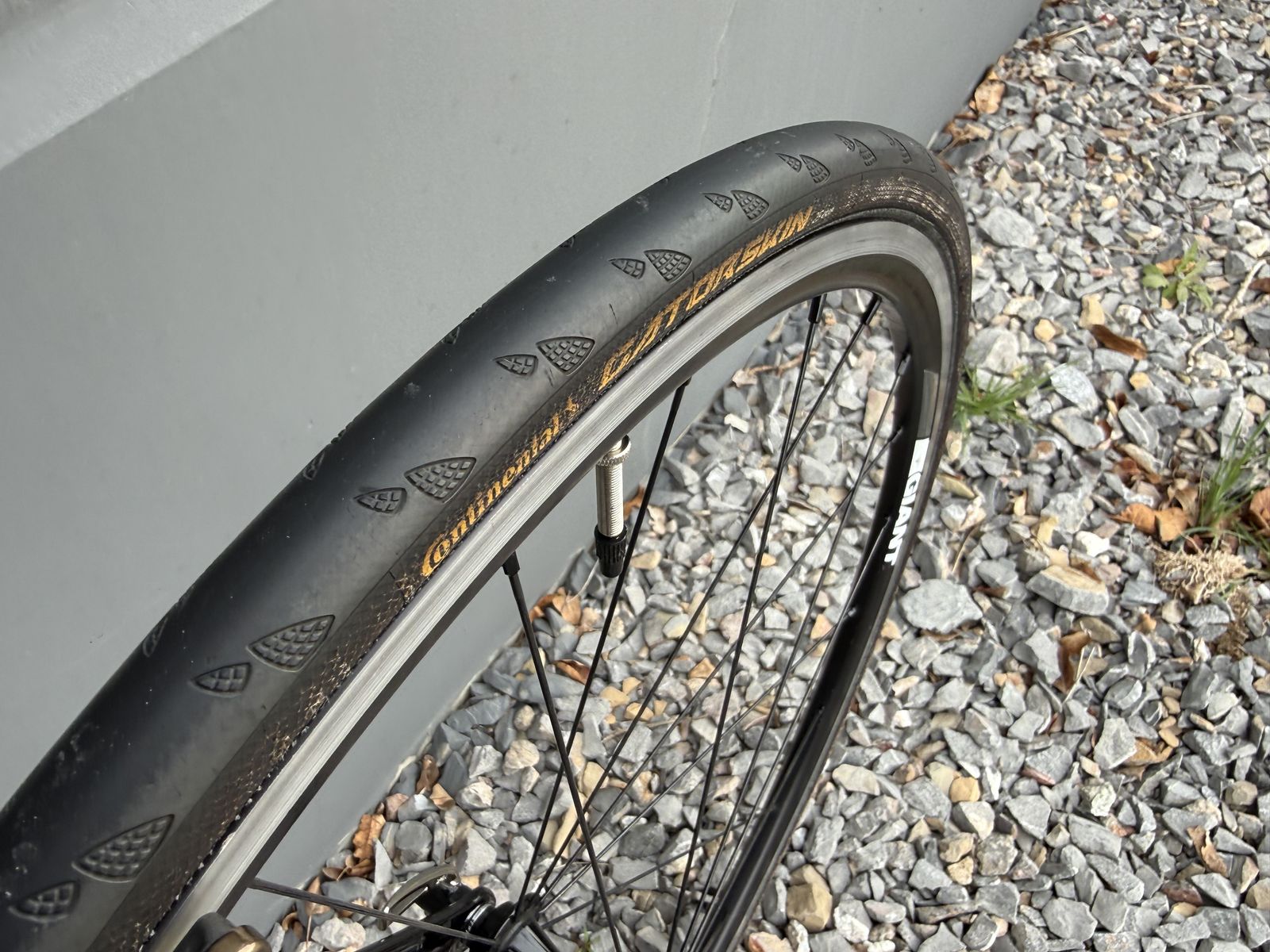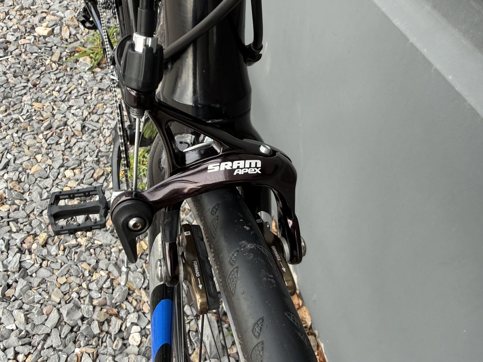 • Full SRAM Apex 10-speed drivetrain • 170 mm compact crankset (50/34) • 11–32 cassette with wide gear range — excellent for climbing • Giant P-R2 alloy wheelset • Continental Gatorskin 25 mm tires with plenty of life remaining