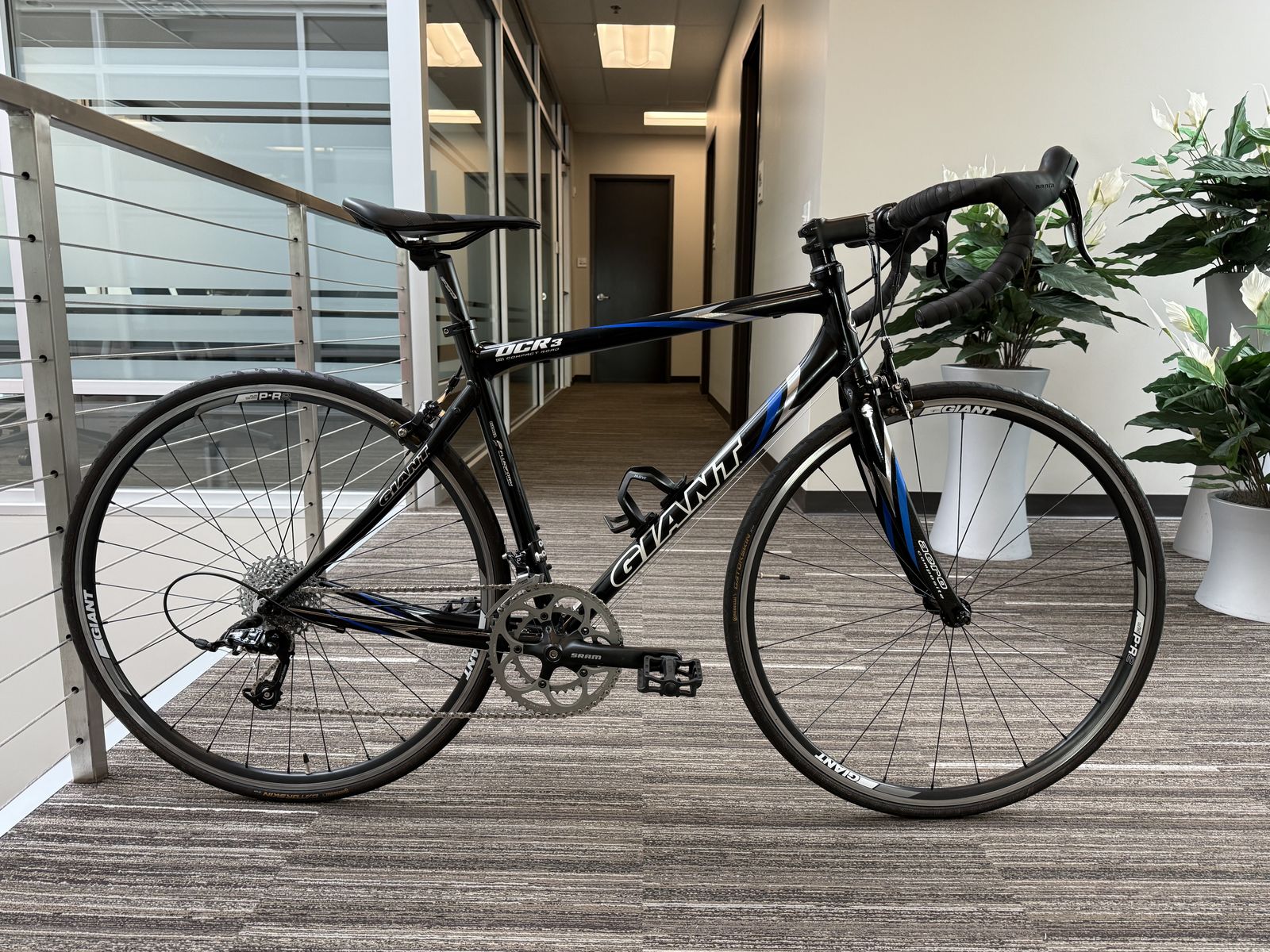 ZelleClean, lightweight Giant OCR3 aluminum road bike that has been completely refreshed and upgraded. Aside from the original frame and fork, virtually every component on this bike has been updated or replaced.