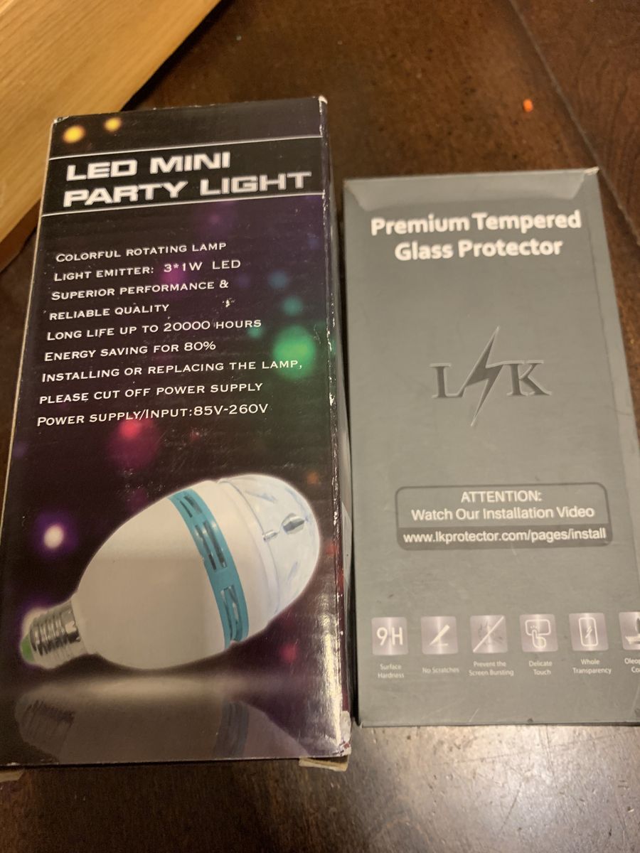Wireless charger, power strip, 6ft micro charger, led mini party light, iPhone 8 screen protector, safety padlock