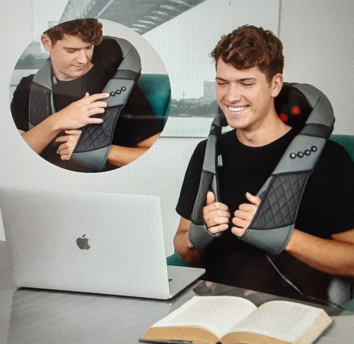 This is a New Resteck Shiatsu 8-Heated Rollers Deep Kneading Neck Massager for Muscles in Neck, Shoulders, Lower Back, Arms, Legs, Calves, Feet etc.