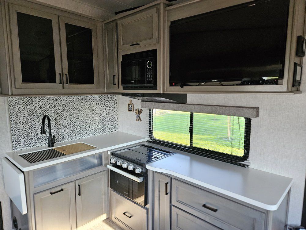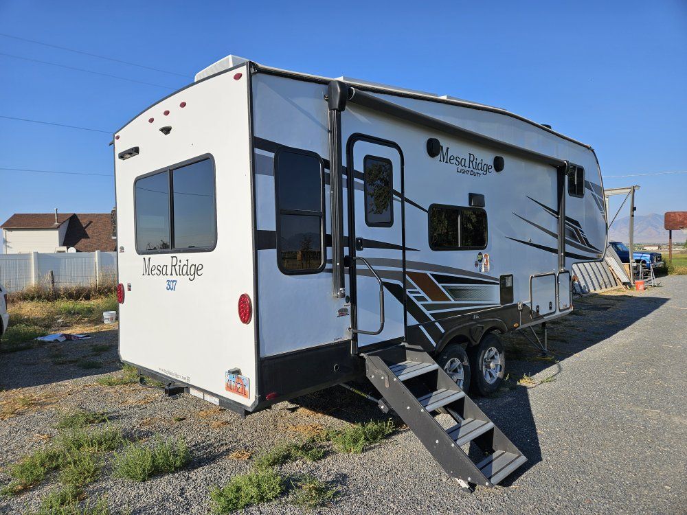 This is our dream trailer. Simple and easy to set up. It has only been on two trips though and we are not looking like we will in the future. Only changes we made were taking out the rear couch and putting in two recliners, a better matress and installing an air ride goosebox. We have the original 5th wheel box. Bank owned. Thank you for looking.