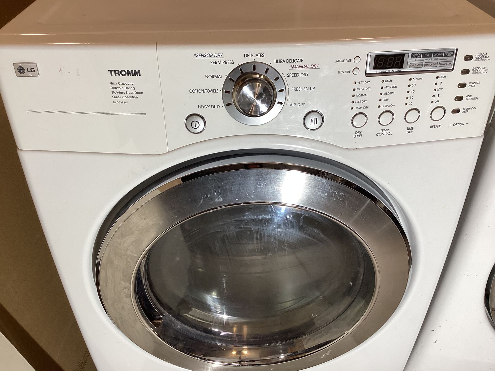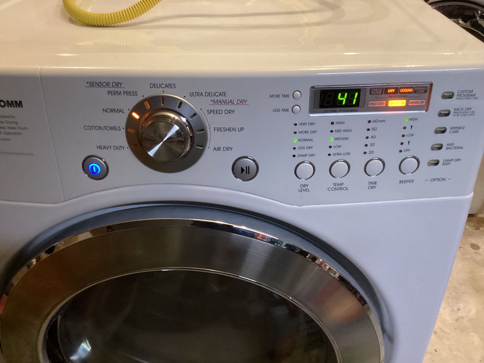 PayPalFor sale is a matching set of LG washer dryer. The washer is LG model WM2301HW with inverter direct drive. The natural gas dryer is LG TROMM model DLG5988W. Comes with flexible gas line & hot and cold water hoses. Both washer and dryer use regular 120 volt outlets, doesn’t require any 240V outlets. I just took apart the dryer and vacuumed out all the lint and debris inside and wiped all the lint in the exhaust outlet. Washer $200 Dryer $100.