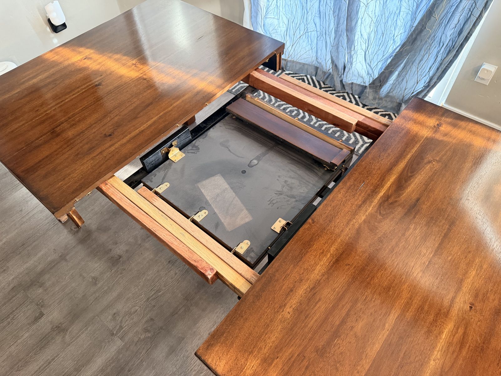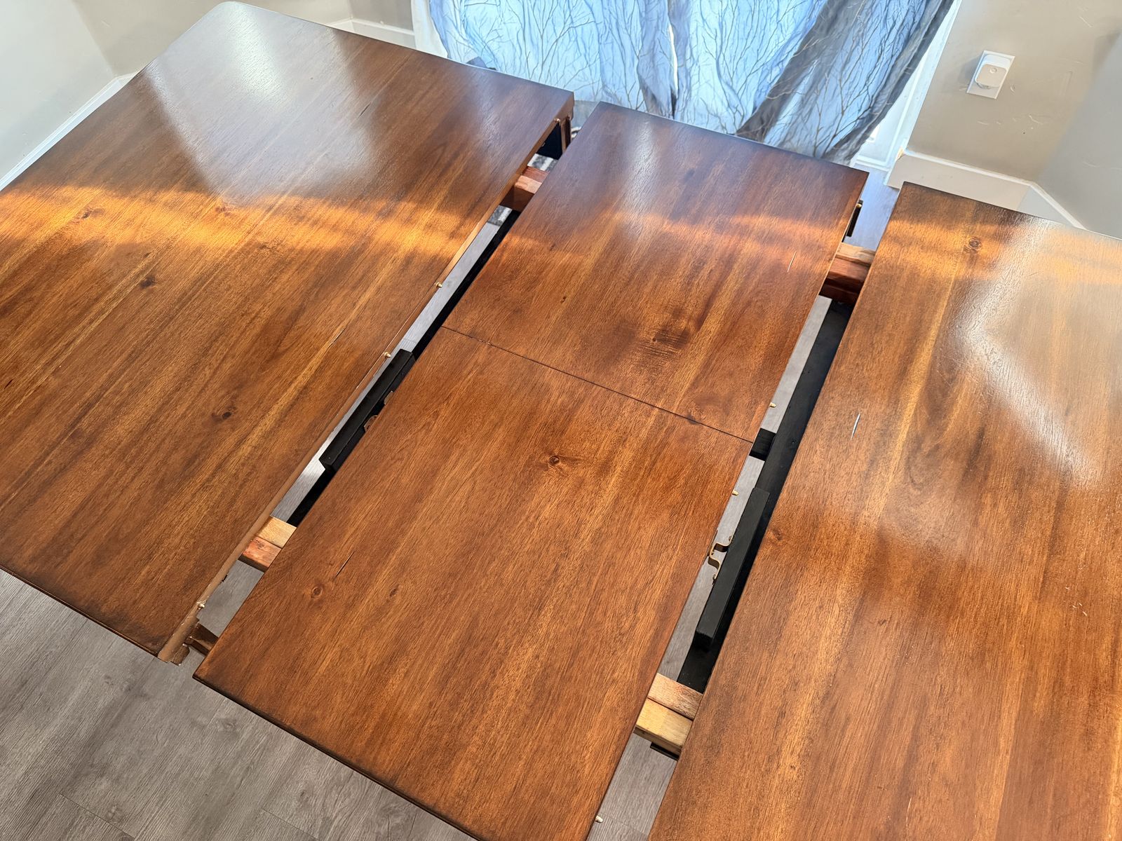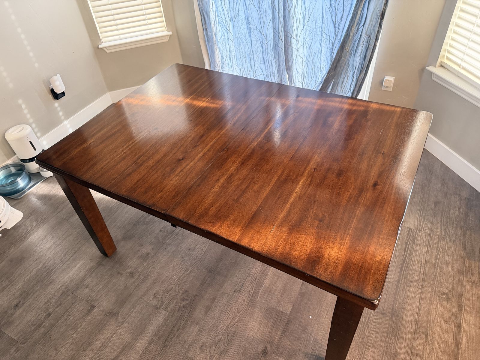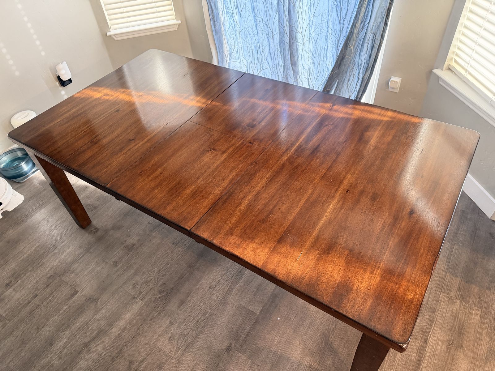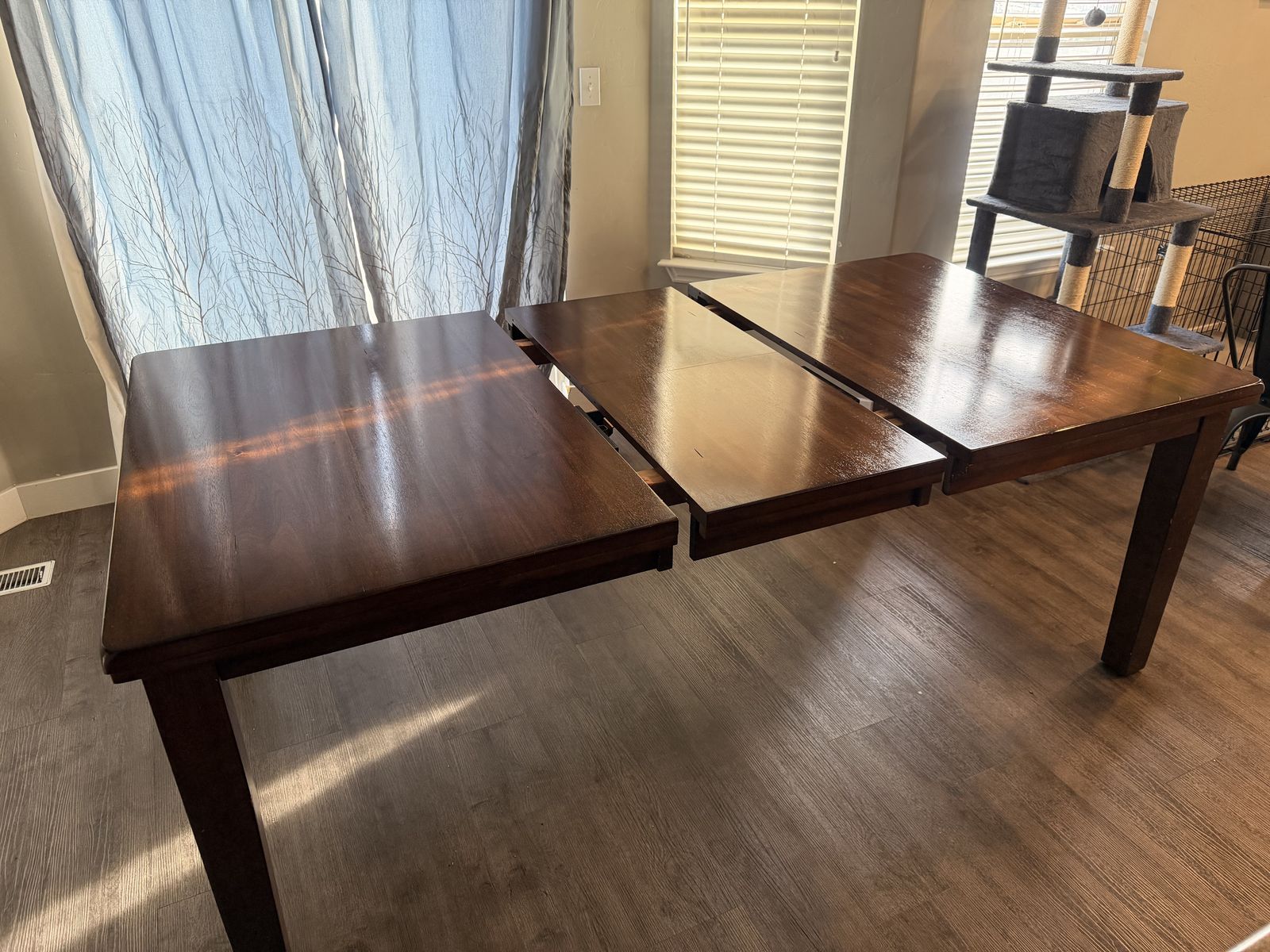 VenmoWe’ve loved this table since purchasing it new from Ashley Furniture, but we recently upgraded to a larger one and no longer have space for it. The table measures 60 long x 42 wide x 30.5 high and includes a built-in 18 leaf that extends the length to 78, making it great for hosting. It comfortably seats up to 8 people when extended. The finish is a rich brown wood tone that works well with a variety of dining chairs and styles. Chairs are not included. Pickup only in Spanish Fork. Table will be disassembled for easy transportation.
