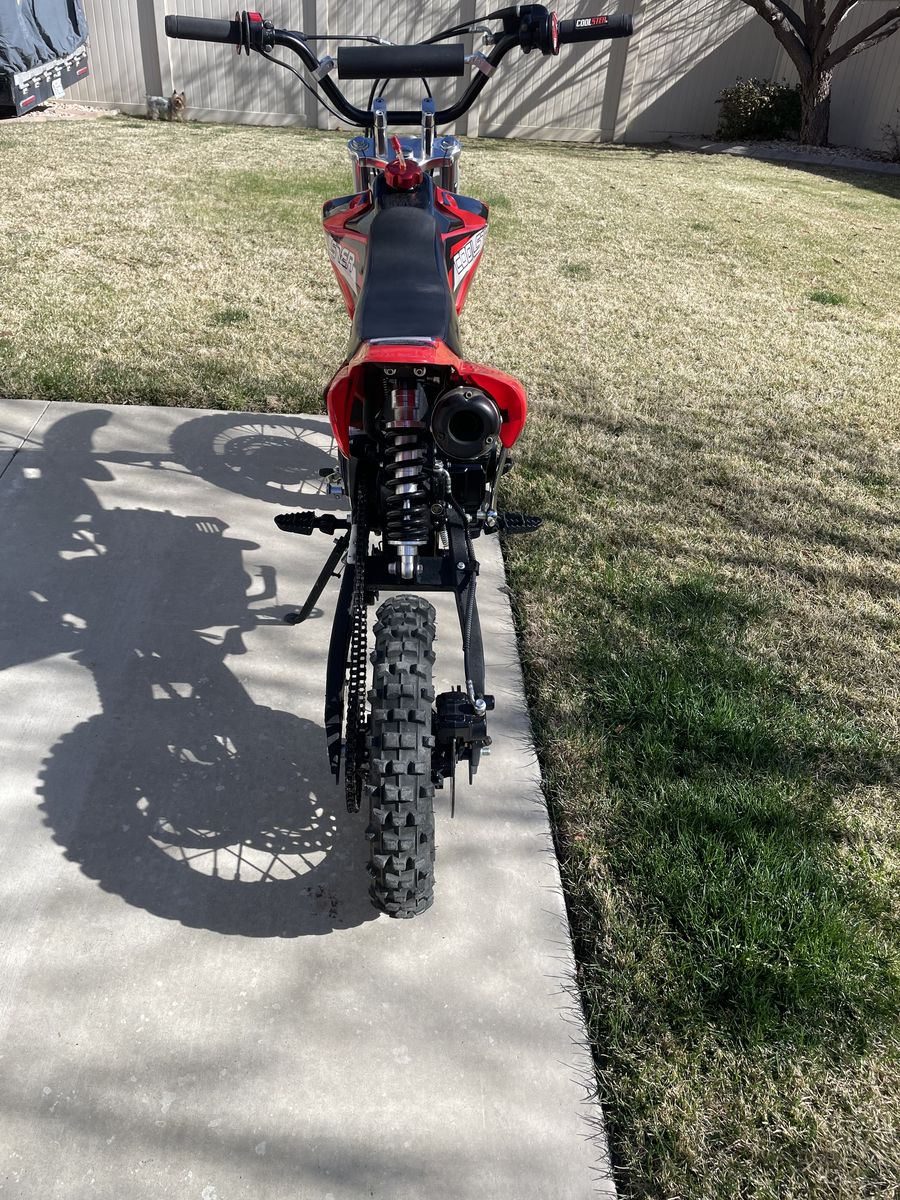 Like new, has only been ridden a couple times. Kids all have bigger bikes bikes now. Has the upgraded QIYE motor with a clutch and an aftermarket air filter. 850.00 text Steve 801-808-5755