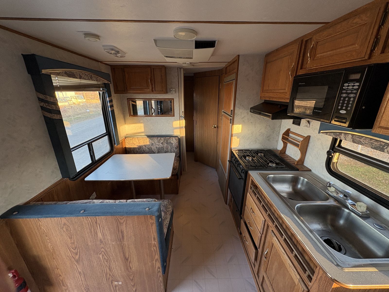 I bought this trailer from a guy that had a blow out that ruined the wheel well, some wiring and a water line. I have repaired everything and it’s good to go. I repair trailers for a living so this has been repaired correctly. Due to this it has a rebuilt title. It doesn’t have propane tanks but I have one we can use to test all the appliances.