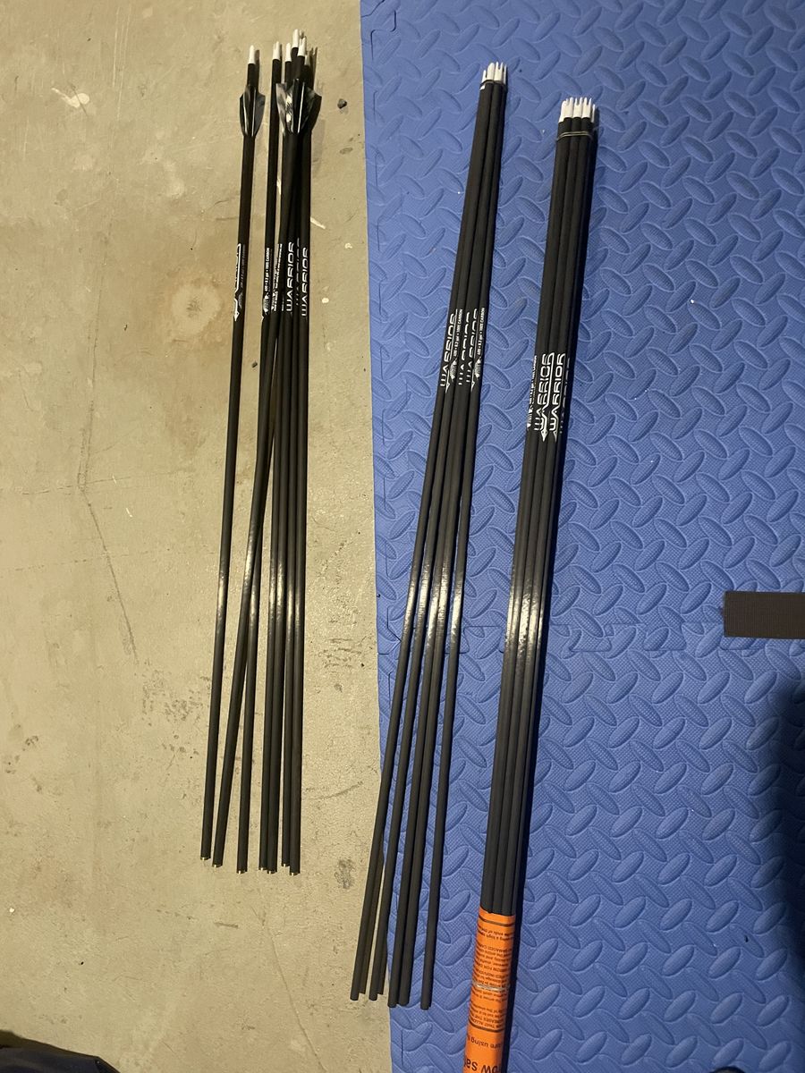 VenmoI have 2 dozen gold tip warrior arrow. 18 arrows are brand new and uncut. 6 of them have 100grain inserts that are hot glued in so they can be taken out. The 6 are cut to 30” carbon to carbon. I have 100 grain inserts for all of them and the standard inserts. Will also come with the internal weight system. Let me know if you have any questions. Text is best
