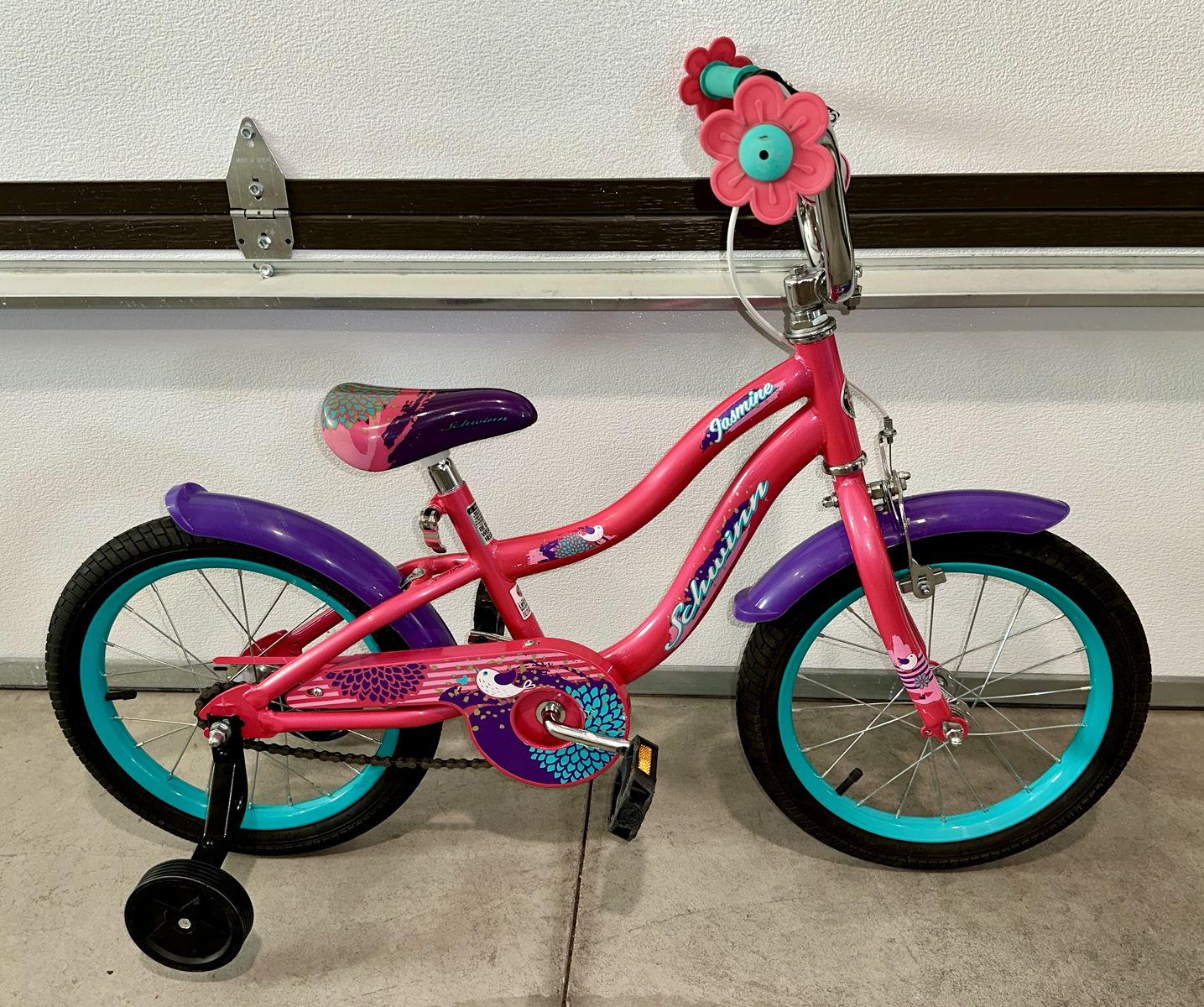 VenmoSchwinn Jasmine girls 16” kids bicycle with training wheels and dual brakes option - handbrake and pedal brake. In great, barely ridden condition. $75 cash or Venmo