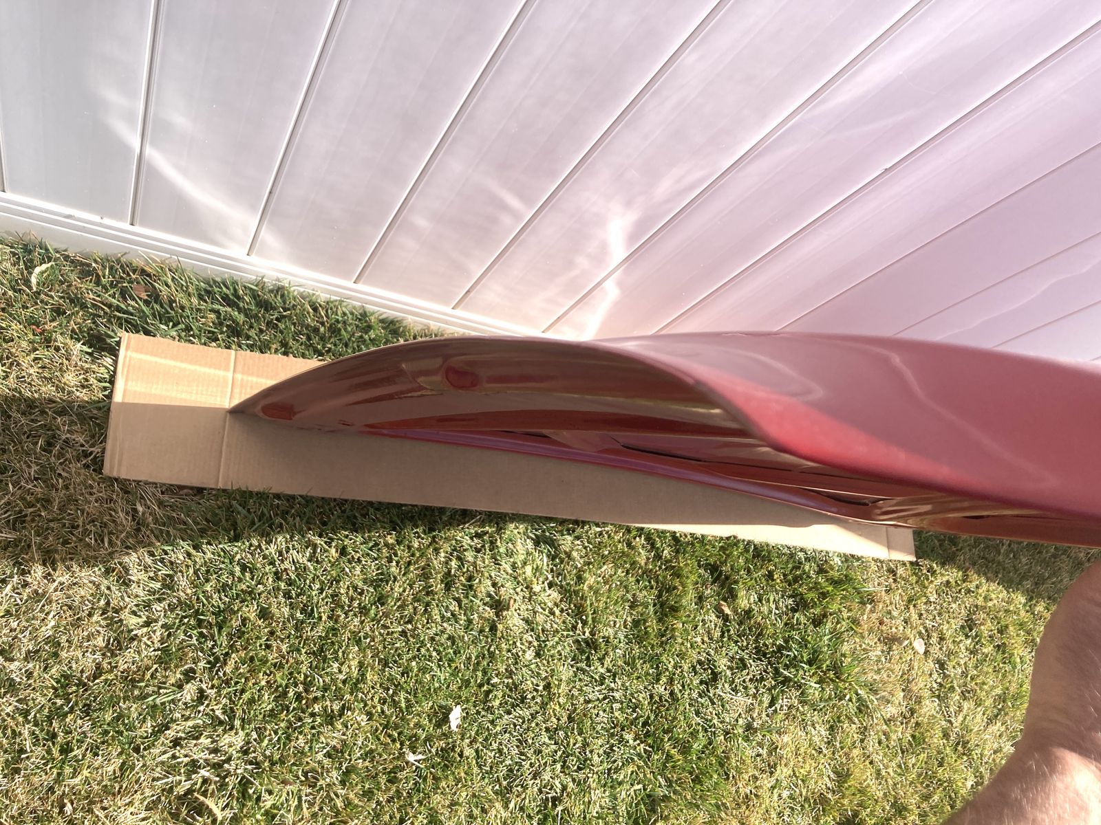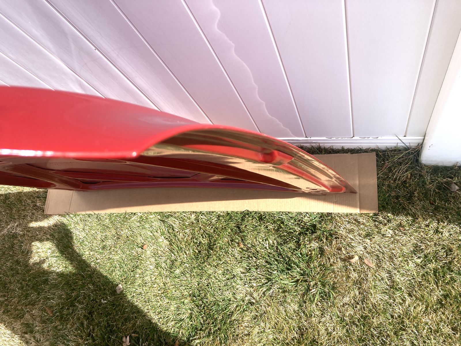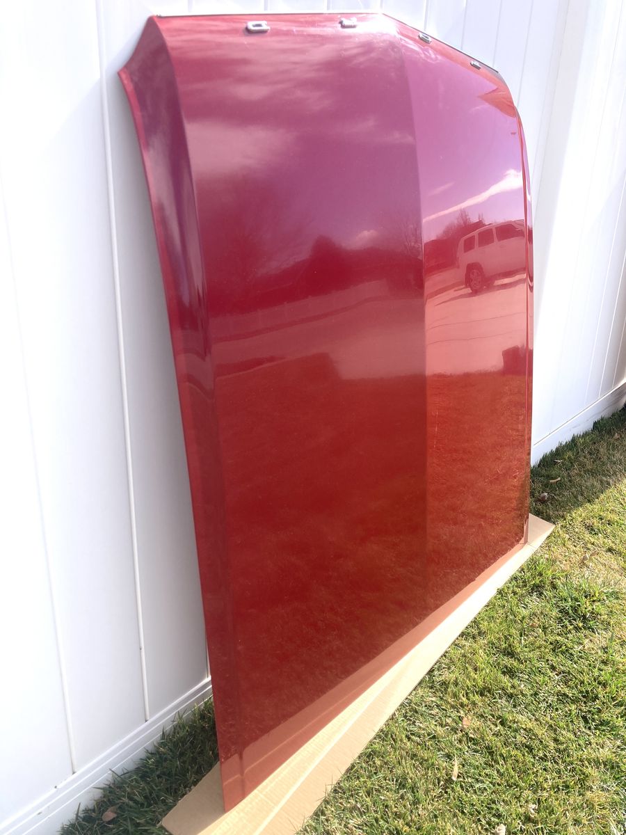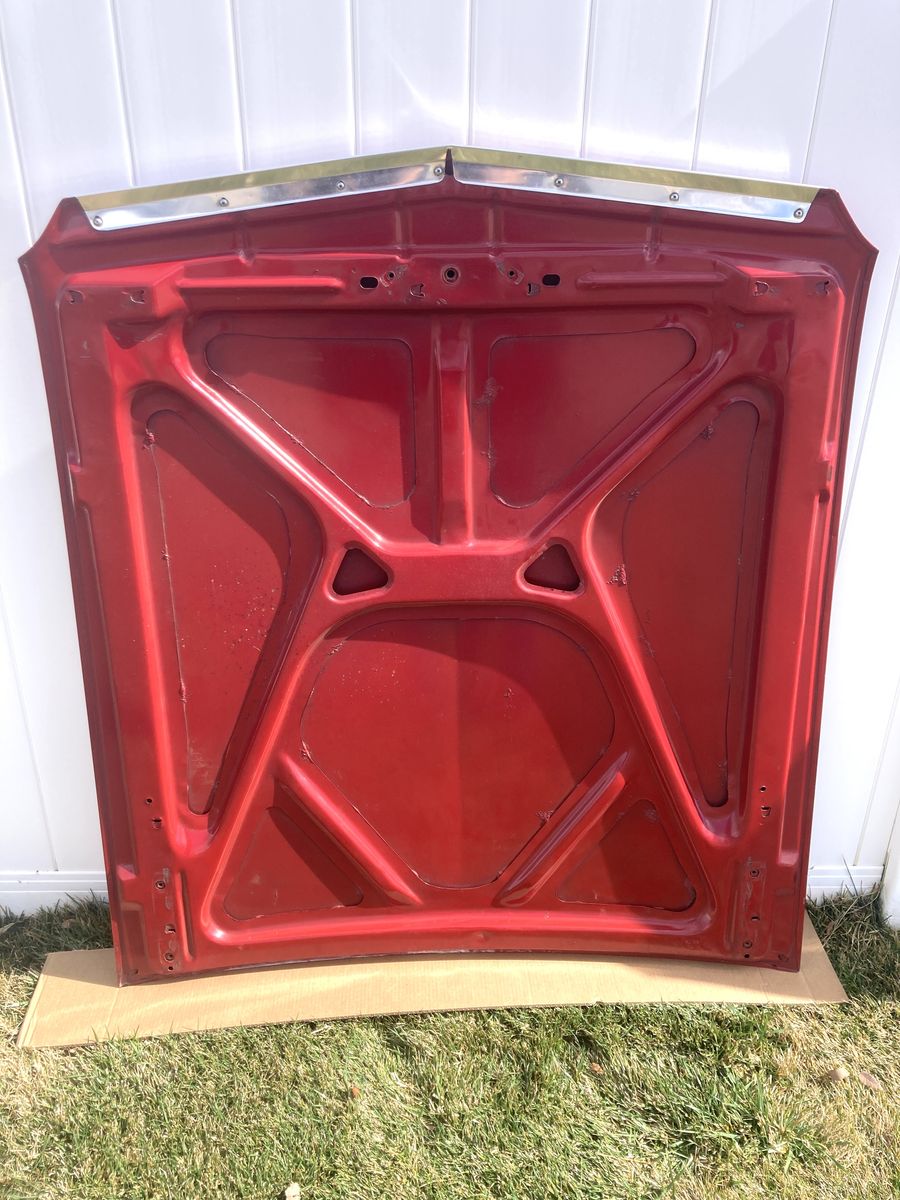 ZelleThis is an extremely nice original hood removed from a 66 hi-po convertible. There is zero damage, no rust and no evidence of previous body work that I can see. It does not appear to have been repainted. It was likely stripped to bare metal when the car was painted in the late 80's or the hood was an NOS hood used for the first time. Photo of the reverse stamped date code shows it's a genuine Ford hood. There are no marks or damage on the hood molding or MUSTANG letters. I do not know whether those are genuine Ford parts or reproductions. All lines are laxer straight and have included photos of angles showing them. The hood is painted in the 66 Candy Apple red. The paint may or may not match other painted panels that are on your car due to paint mixtures could be slightly different, but the quality is nice enough to bolt it on as-is. Show car quality. Local pick up or I can ship freight at your expense. Hood is stored inside of a GM hood box that fits perfectly so it is ready to ship if needed.