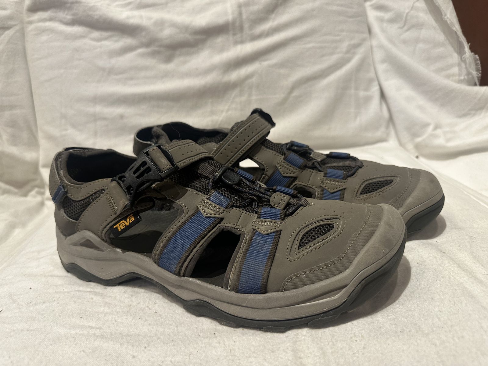 Teva men’s size 12 gray with blue trim, leather and mesh hiking sandals. These are in excellent condition, see photos for details. I take cash or Venmo, but cash is preferred. Text is best. 801-201-4446. Check out my other ads for additional sizes and styles.