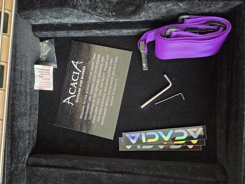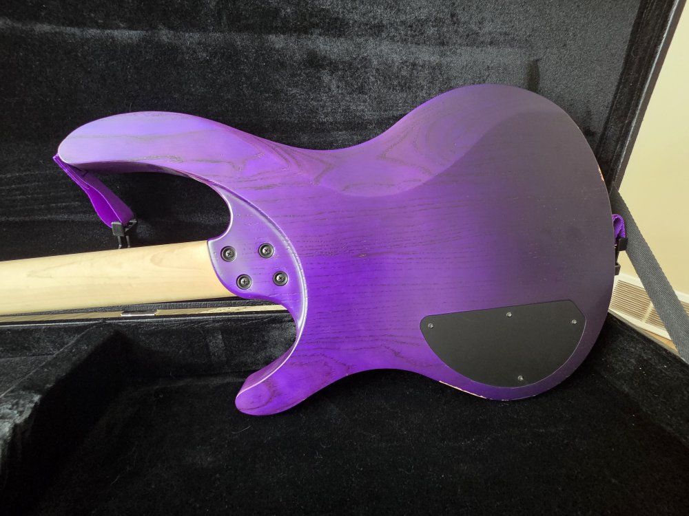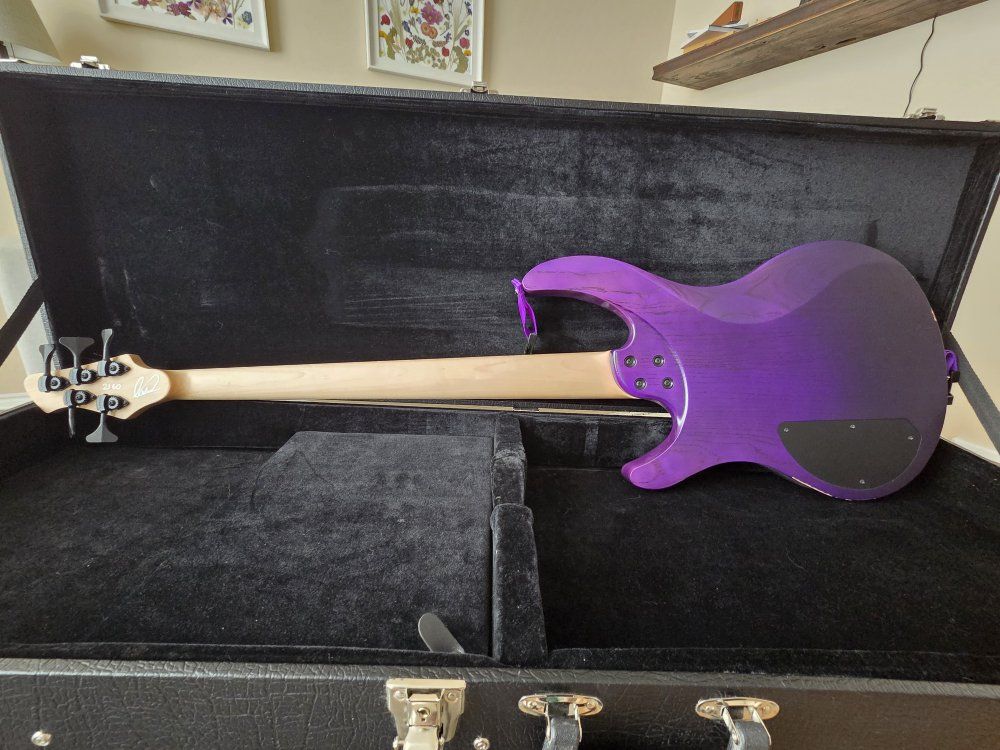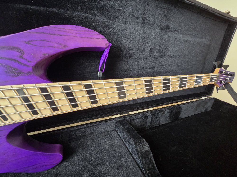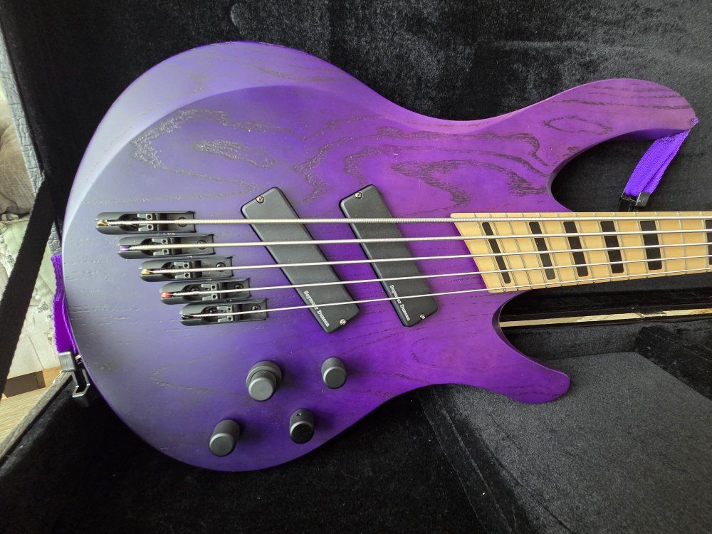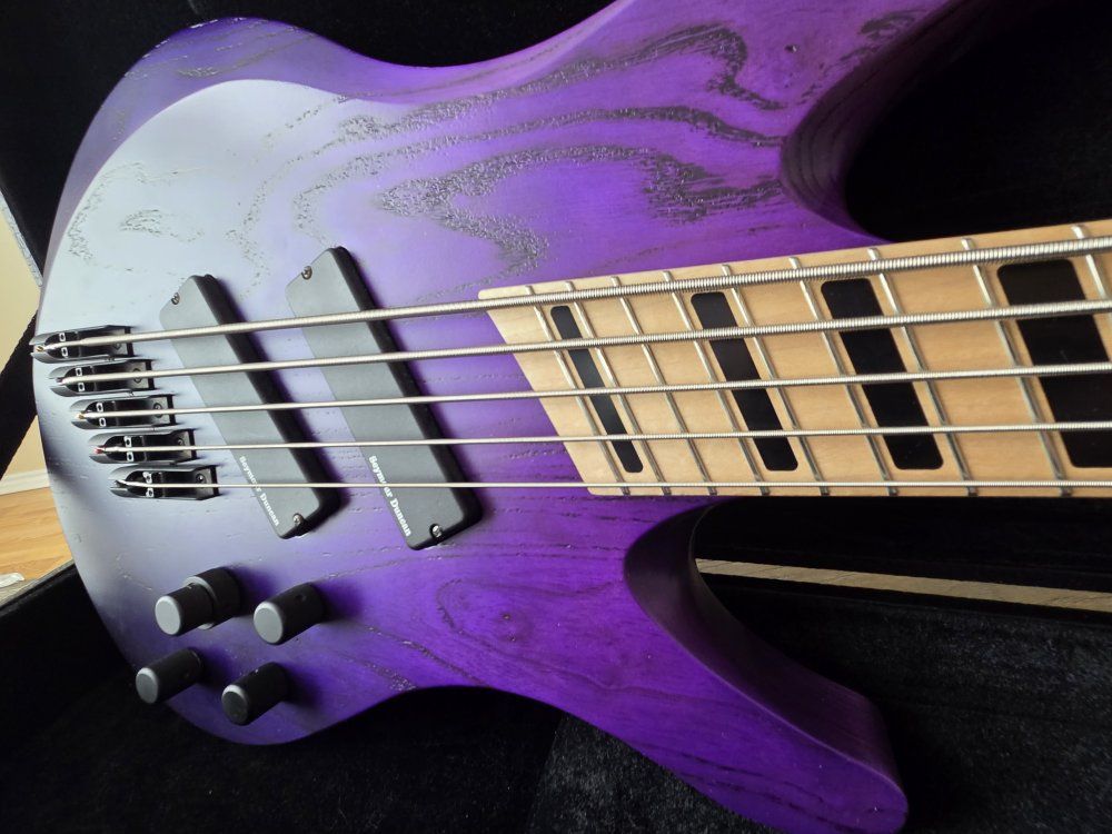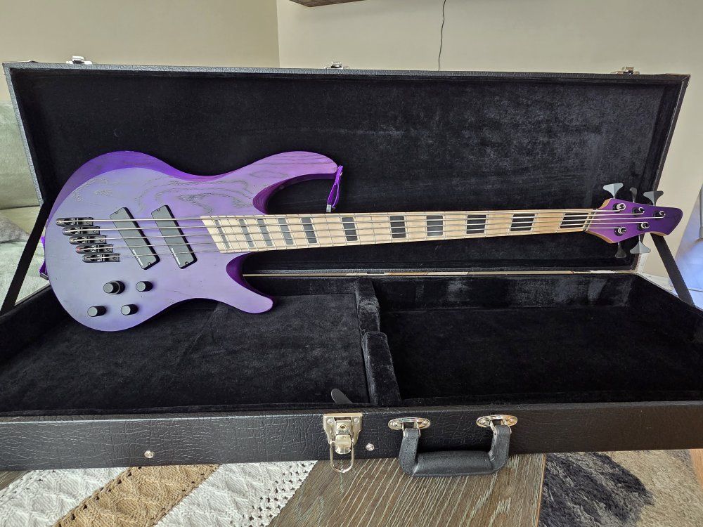 VenmoFor sale is my Acacia Guitars 5 string Atlas Bass. I custom ordered this bass direct from Acacia Guitars in San Diego, California on Sep 2021 (only has had 1 owner) with the purple fade on the swamp ash body & a reverse purple fade on the head stock. Block inlays in the maple fret board & top of the line hipshot tuners & hardware. It is a multi scale bass guitar with 36.75" scale length on the bass side & 34" scale length on the treble side. Which is great for lower tunings or to just get that tight B-standard tone. Has loaded into it Seymour Duncan picks that are HOT & an active 3 band EQ. It does have some paint rubbed away on the back lower corner where it rests on your leg when sitting, where the strap has rubbed on it & a small ding on the upper portion where your arm rests. Comes with original hard shell case, matching purple dimarizo strap & info card about the guitar. If you want to come check it out & give it a test drive shoot me a text. 8016683036.