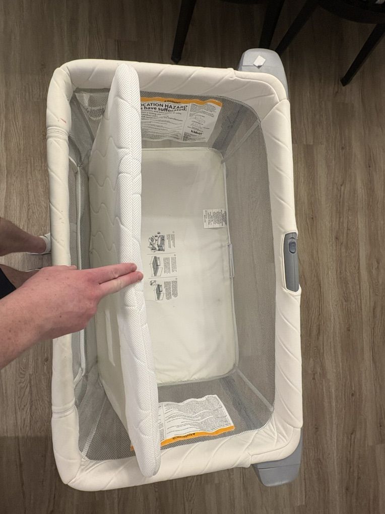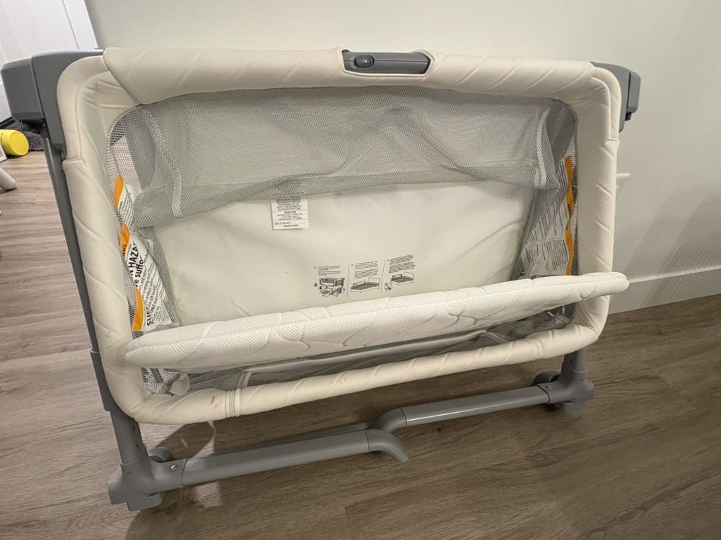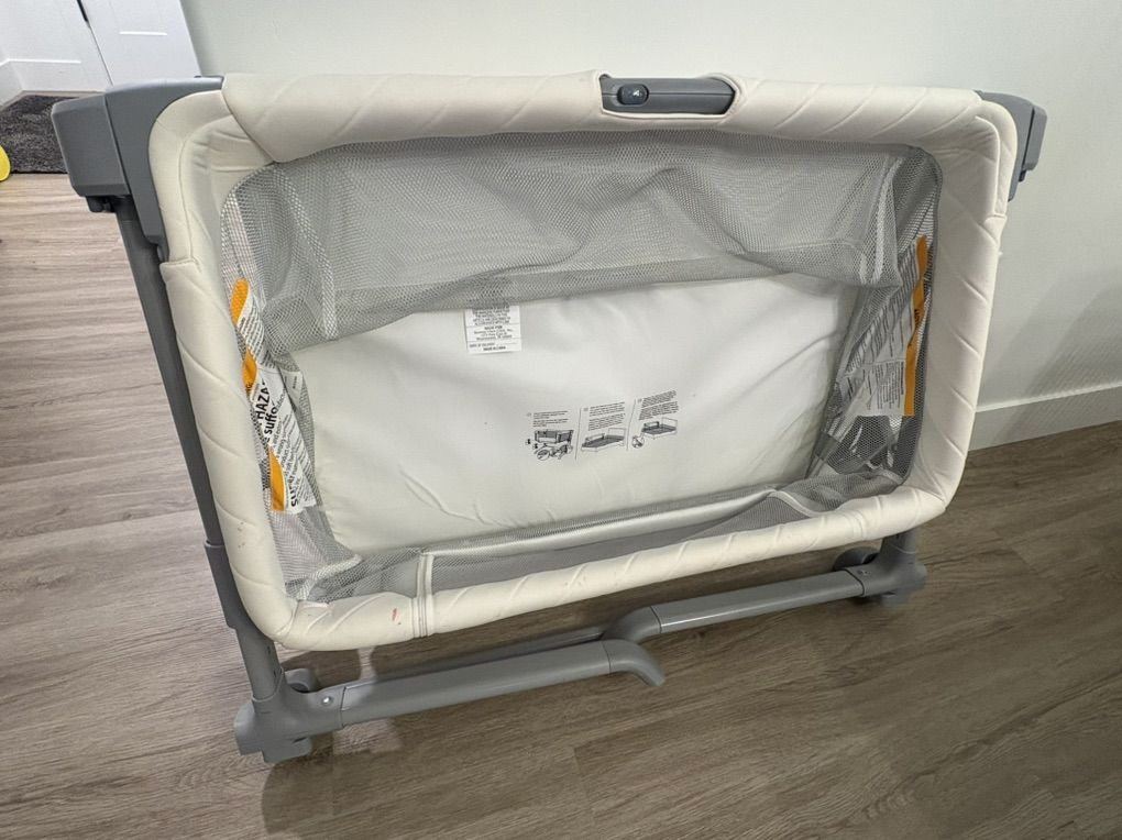 ZelleGreat bassinet for newborns up to about 6-8 months. Breathable mesh sides. Adjustable height for easy Bessie sleeper design. Easily close down and open up for moving around rooms. Clean smoke-free home. Used just one bay and she just graduated to a crib.